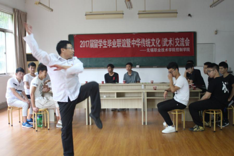 2017年6月16日,在我校明德楼C(J3)举办了一场别开生面的留学生毕业联谊暨中外传统文化交流会。本次交流会由控制技术学院分团委组织,控制技术学院分团委书记花树洋副教授出席了此次交流会。此次交流会的目的是为了促进中外传统文化交流,增进外国留学生对中华武术文化的了解。