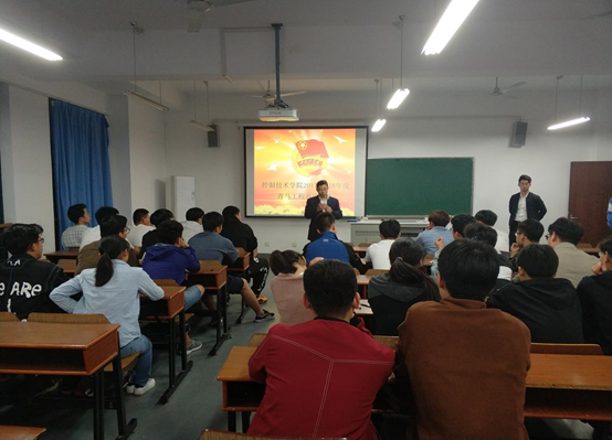 4月13日,控制技术学院2018年度青马工程培训班开班典礼在工B-604举行,分团委书记花树洋老师出席开班仪式并作首场专题培训。
