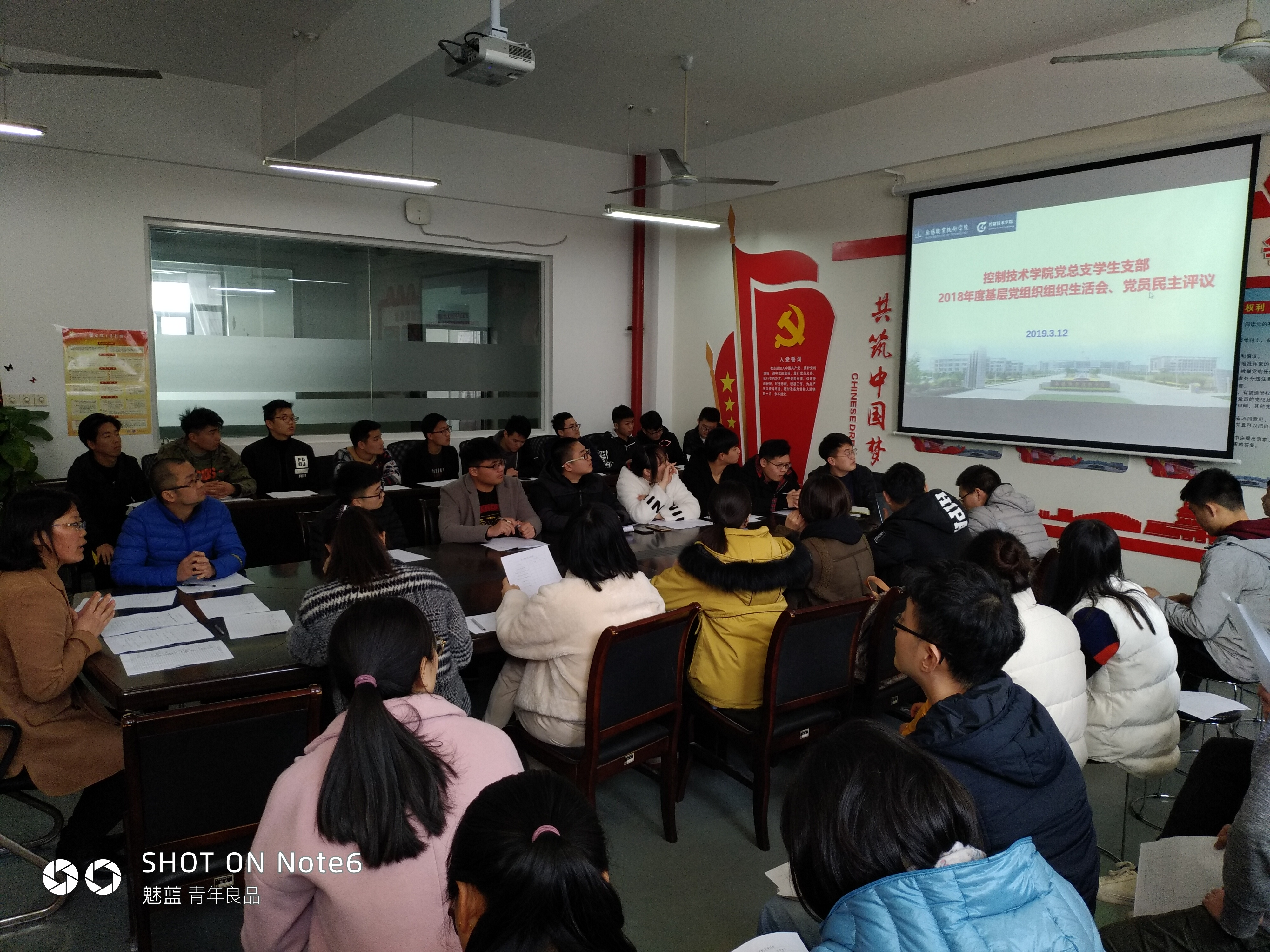 为进一步学习贯彻习近平新时代中国特色社会主义思想,持续推进“两学一做”学习教育常态化制度化,提升基层党组织组织力,控制技术学院党总支教工支部及学生党支部于2019年3月12日下午,在智能工厂二楼、工业中心B409开展了2018年度专题组织生活会。组织生活会由各支部书记主持,除7人因事请假外,控制技术学院党总支教工支部党员与学生支部党员全部到场。
