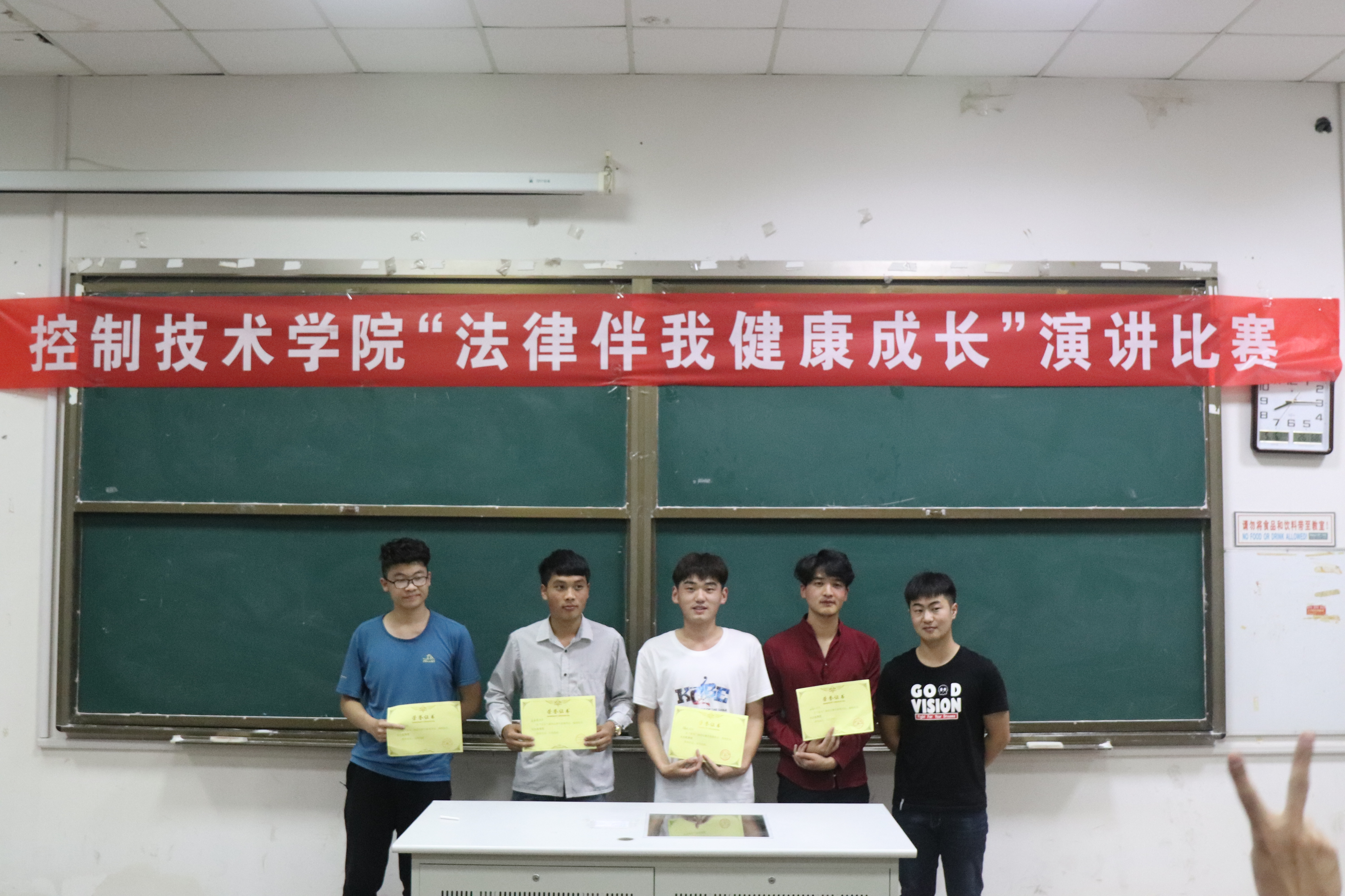 5月16日晚19:00,控制技术学院“法律伴我健康成长”演讲比赛决赛在至善楼E401举办,控制技术学院分团委庞军老师和分团委学生会主席团应邀担任决赛评委。