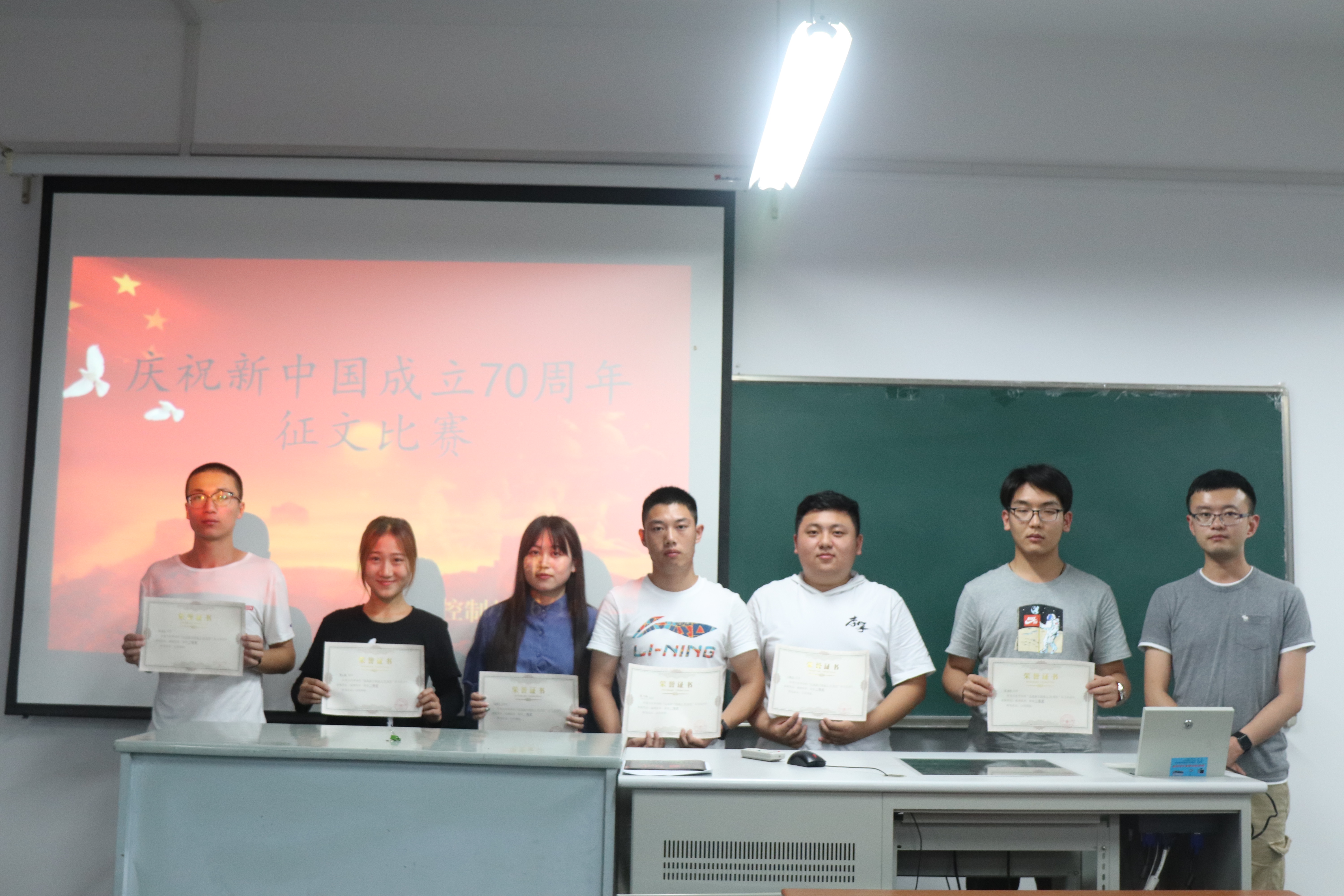 为庆祝新中国成立70周年,6月19日晚6点,控制技术学院星火社于工B-604举办“庆祝新中国成立70周年征文比赛”表彰活动,出席本次活动的有控制技术学院分团委庞军老师,学生会主席团和控制技术学院星火社全体成员。