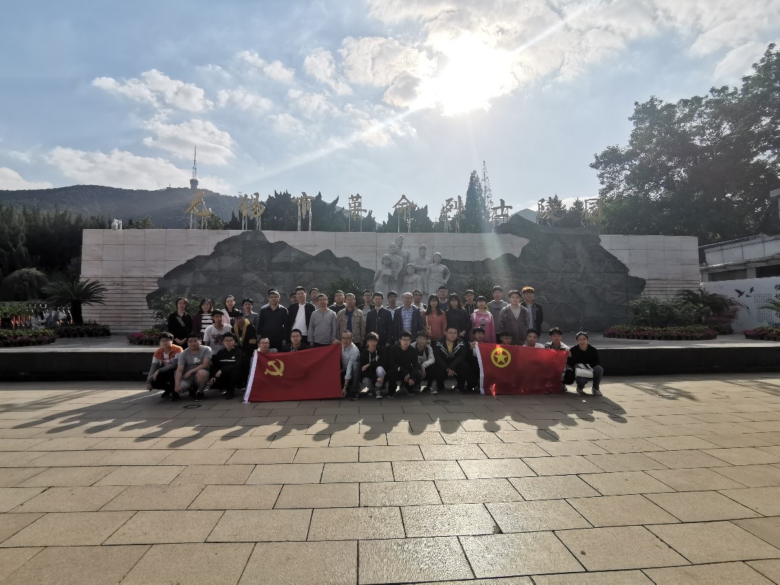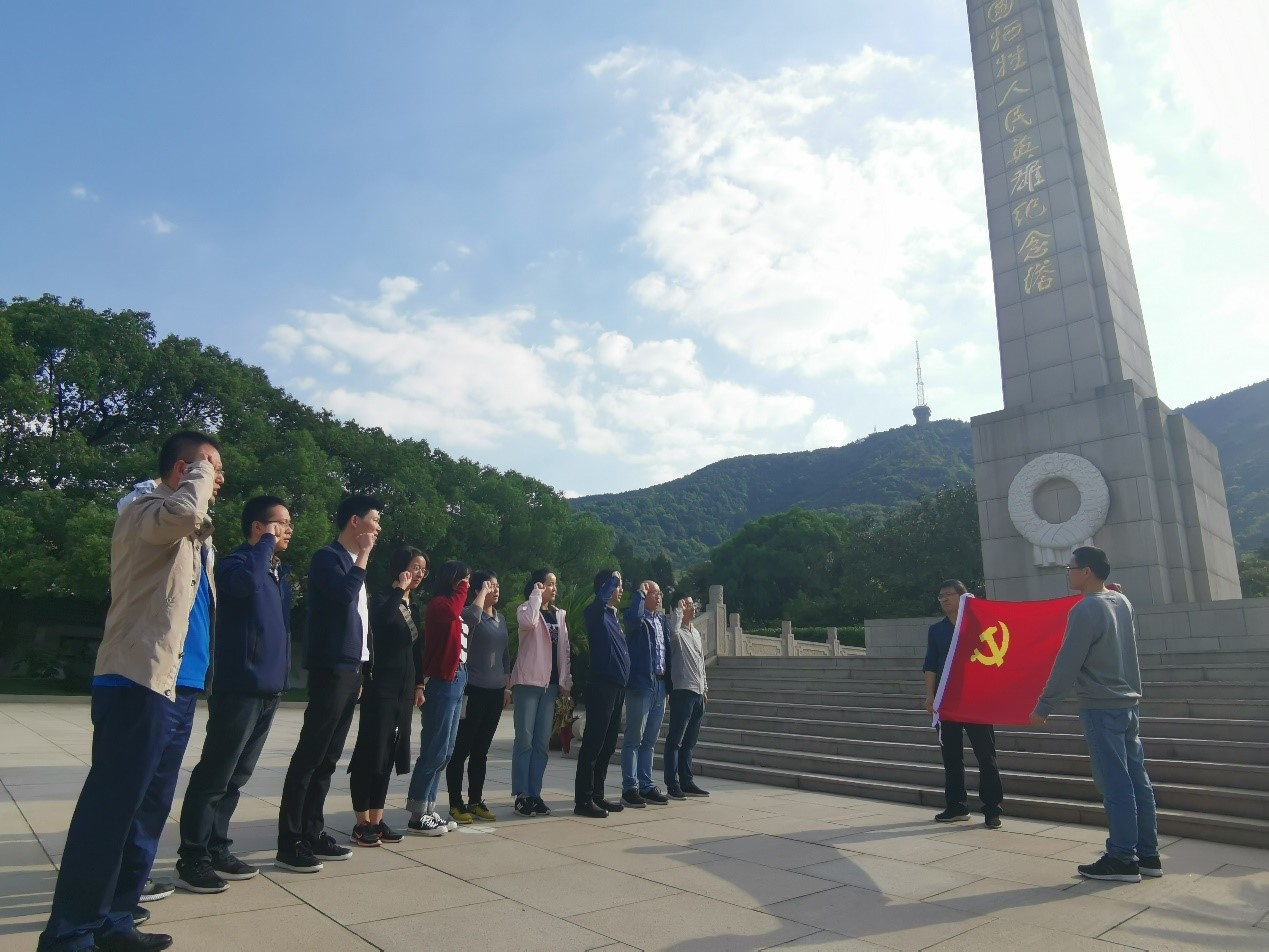 参观完烈士事迹陈列馆,师生们又瞻仰了“为国牺牲人民英雄纪念塔”,巍峨的纪念塔昭示着革命先烈的丰功伟绩将永存中华,铭记在我们心中。教工二支部全体党员在“为国牺牲人民英雄纪念塔”下重温入党誓词,面对党旗进行庄严宣誓。纪念塔下深沉有力的入党宣誓声既是表明对党的忠诚,也是告慰革命先烈们,我们将继续坚定共产党员的入党初心和使命砥砺前行。同学们通过观看支部党员的重温入党誓词活动,既体验到强烈的庄重严肃的仪式感,同时也感受到共产党员的强烈的责任感和使命感,加深了对中国共产党的认识。