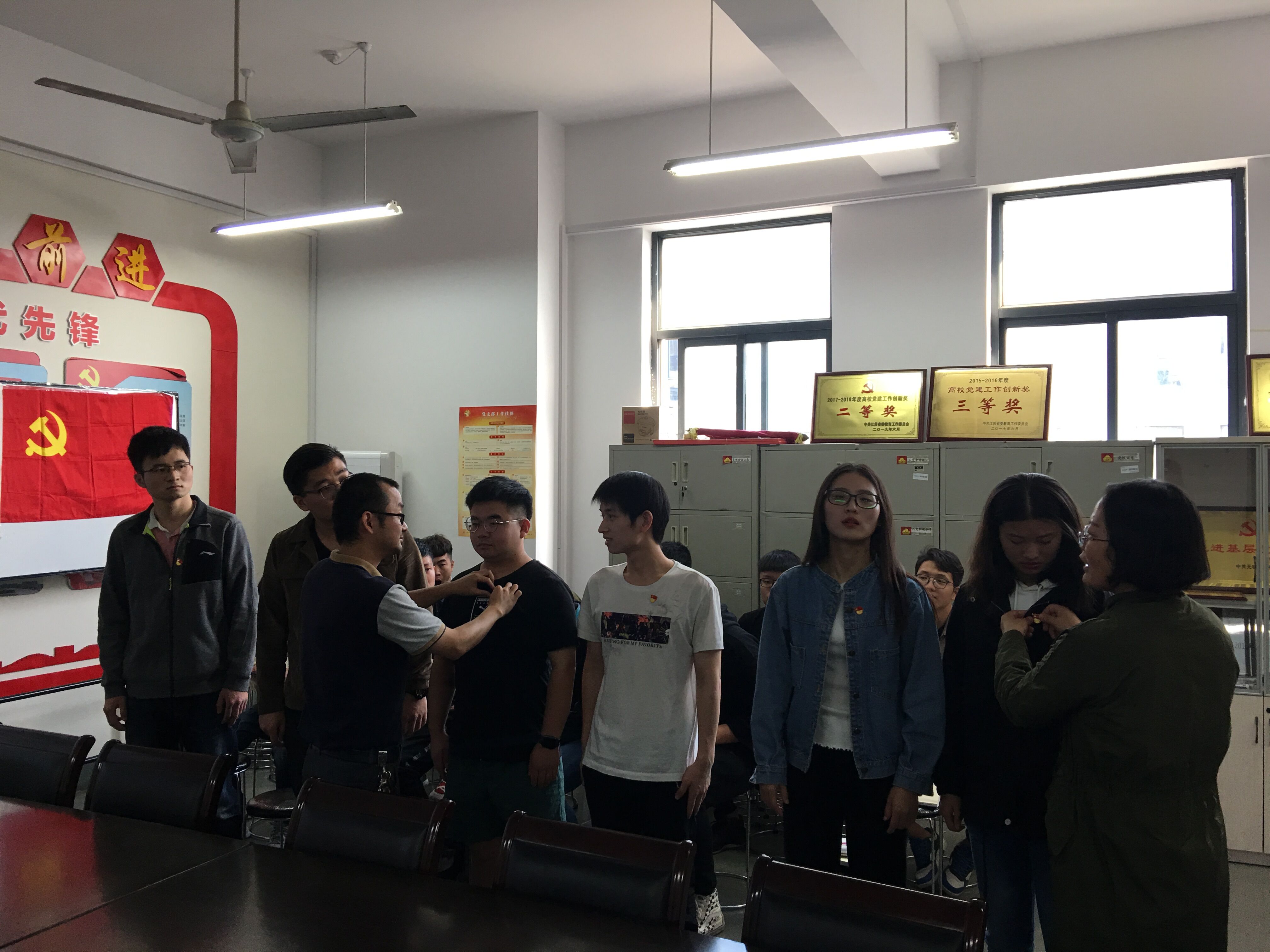 在此次“四重四亮”活动的最后,支部举行了新党员入党宣誓仪式,学生党支部书记为新入党的党员佩戴了党徽。全体党员重温了入党誓词。
