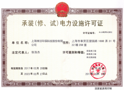 上海神洁环保科技股份有限公司是一家集科研开发、工程施工和贸易为一体的高新技术企业,一直致力于开发高科技环保系列清洗维护产品,满足国际、国内电力设备、石化设备、精密电子设备的维护技术不断提升的实际需求。是国家能源总局核准的电力施工企业,资质等级为:电力承装三级、电力承修三级,电力承试四级。专业承接电压等级35KV(含)及以下的输变电工程。包括:供电方案设计咨询、新装/增容手续代理、变电所/线路施工、交接试验、预防性试验等。同时具有上海市住建委核准的电力工程总承包三级资质,输变电工程专业承包三级资质等。