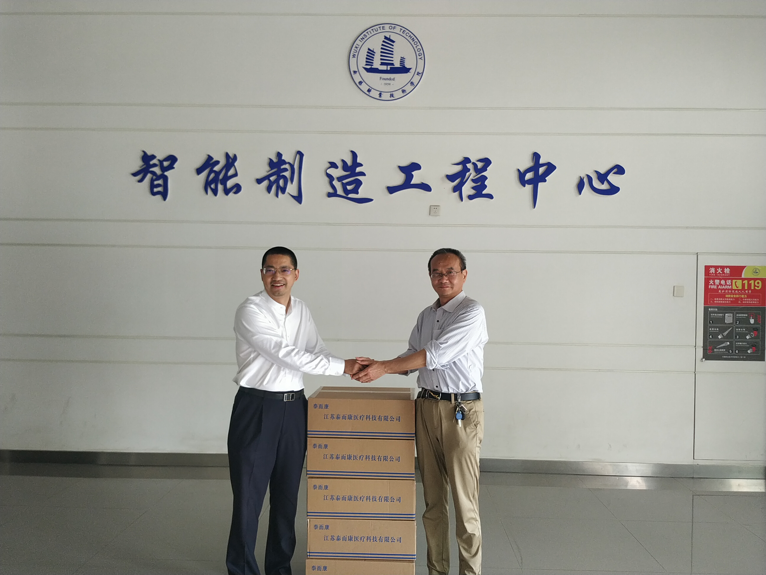 5月9日上午,江苏和亿智能科技有限公司董事长郭永贵向控制技术学院捐赠5000个口罩,控制技术学院院长黄麟作为代表接受了捐赠,并向郭永贵先生致以诚挚的感谢和崇高的敬意!