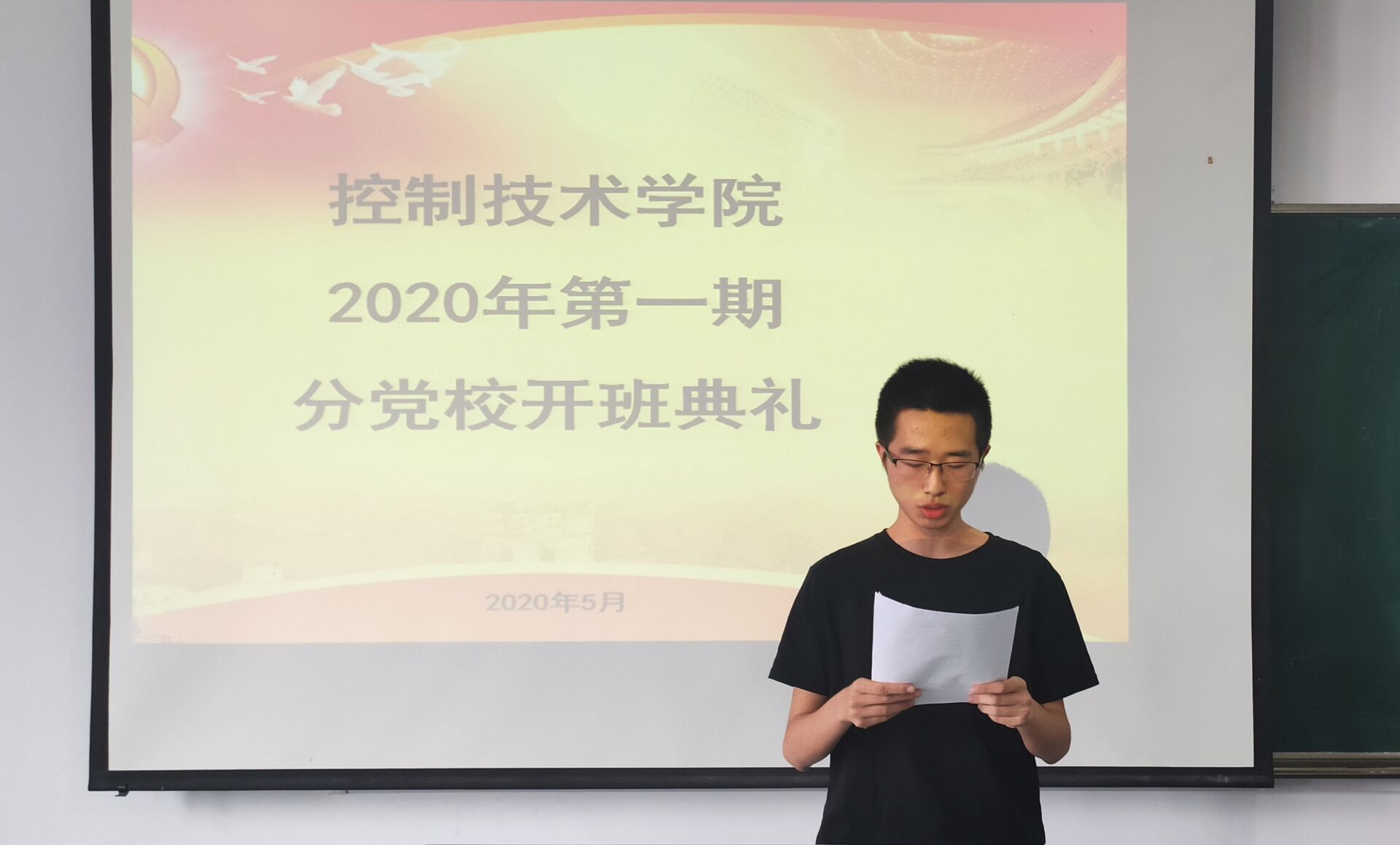 5月26日下午13:30,控制技术学院在工B-604举行2020年第一期分党校开班典礼。出席本次开班典礼的有控制技术学院党总支副书记朱倩,党总支副书记程继明,学工办主任王丽梅、全体辅导员及69位分党校学员。