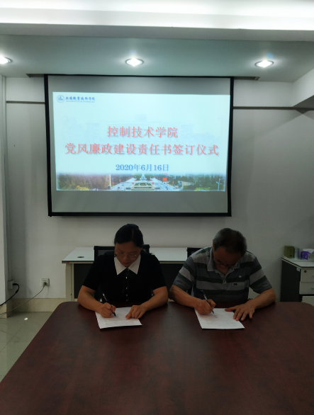 为进一步落实党风廉政建设主体责任,强化领导班子 “一岗双责”,筑牢拒腐防变思想道德防线,增强教职工廉洁自律意识,6月16日下午,控制技术学院党总支2020年度党风廉政建设责任书签订仪式在智能制造工程中心201会议室举行,控制技术学院党总支班子成员、各系部办负责人、支部书记等参会,仪式由党总支纪检委员刘志刚主持。