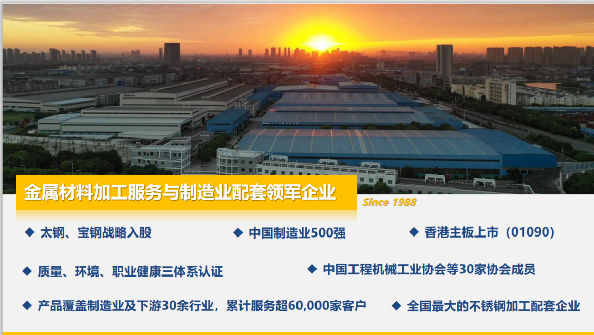 大明集团(香港主板上市01090)创立于1988年,中国制造业500强,是金属材料加工服务与制造业配套领军企业,全国最大的不锈钢加工配套企业。业务范围覆盖石油石化、新型能源、生物制药、电子通讯、工程机械、特种船舶、轨道交通、航空航天、核电、压力容器等领域。