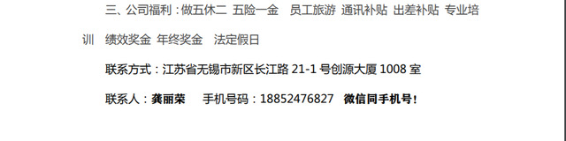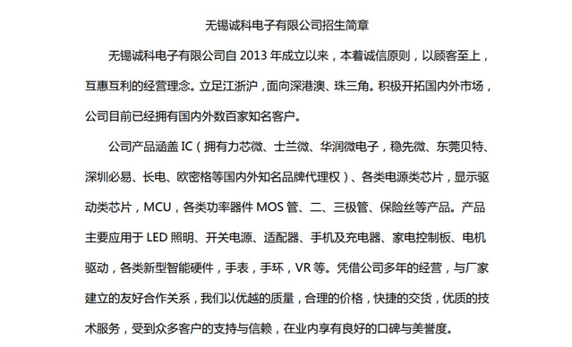 无锡诚科电子招聘简章