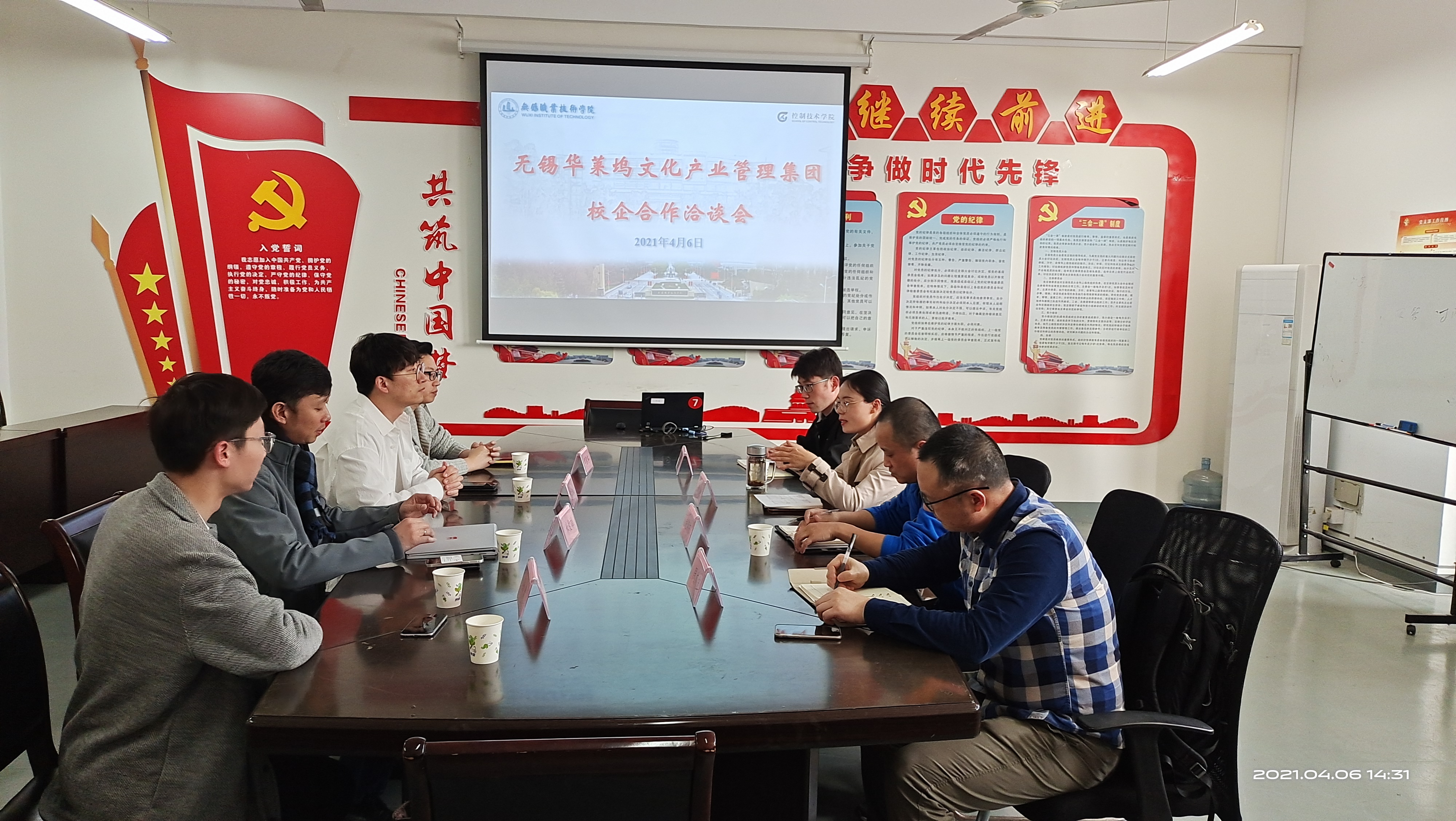 4月6日下午,无锡华莱坞文化产业管理集团副总裁朱玉皎、城贸控股集团项目总监林俊雄等一行来我校开展校企合作洽谈,双方就新时代人才培养、拓展产教融合、校企资源整合及优势互补等方面进行座谈交流。控制技术学院党总支副书记朱倩、副院长赵翱东、副书记程继明及相关专业教师代表参加会议。