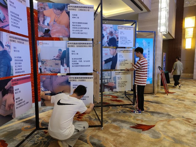 活动当天,志愿者们上午在会场做好活动的会场布置,将相关优秀事迹板报摆放整齐,做好会场的灯光、PPT、视频等调试工作;下午志愿者们做好入场的引导工作,帮助部分残友们有序进场,并维护好会场秩序。本次活动志愿者们较为真切的感受到近年来经开区在助残、扶残公益事业中的点滴成就,也进一步了解了党和政府对残疾人的帮扶政策。本次活动以“筑梦经开·守望同行”为主题,同学们同时在现场观看了由残疾人协会带来的演出歌曲《唱支山歌党听》、诗朗诵《相信未来》、手语舞《听我说谢谢你》,深刻感受到残友们自强不息、顽强拼搏的精气神。