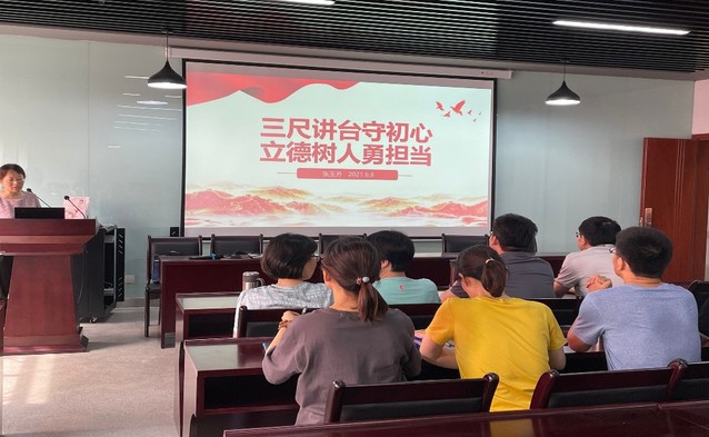6月8日下午,控制技术学院教工第一党支部在2.0产教融合大楼202会议室开展了“支部书记讲党课”活动,教工一支部全体党员参会。支部书记张玉芳以“三尺讲台守初心、立德树人勇担当”为题,分别从坚定信仰,做一名讲政治、有信念的合格党员;爱岗敬业,做一名讲奉献、有作为的共产党员两个方面,为大家做了深入浅出的分析和讲解。