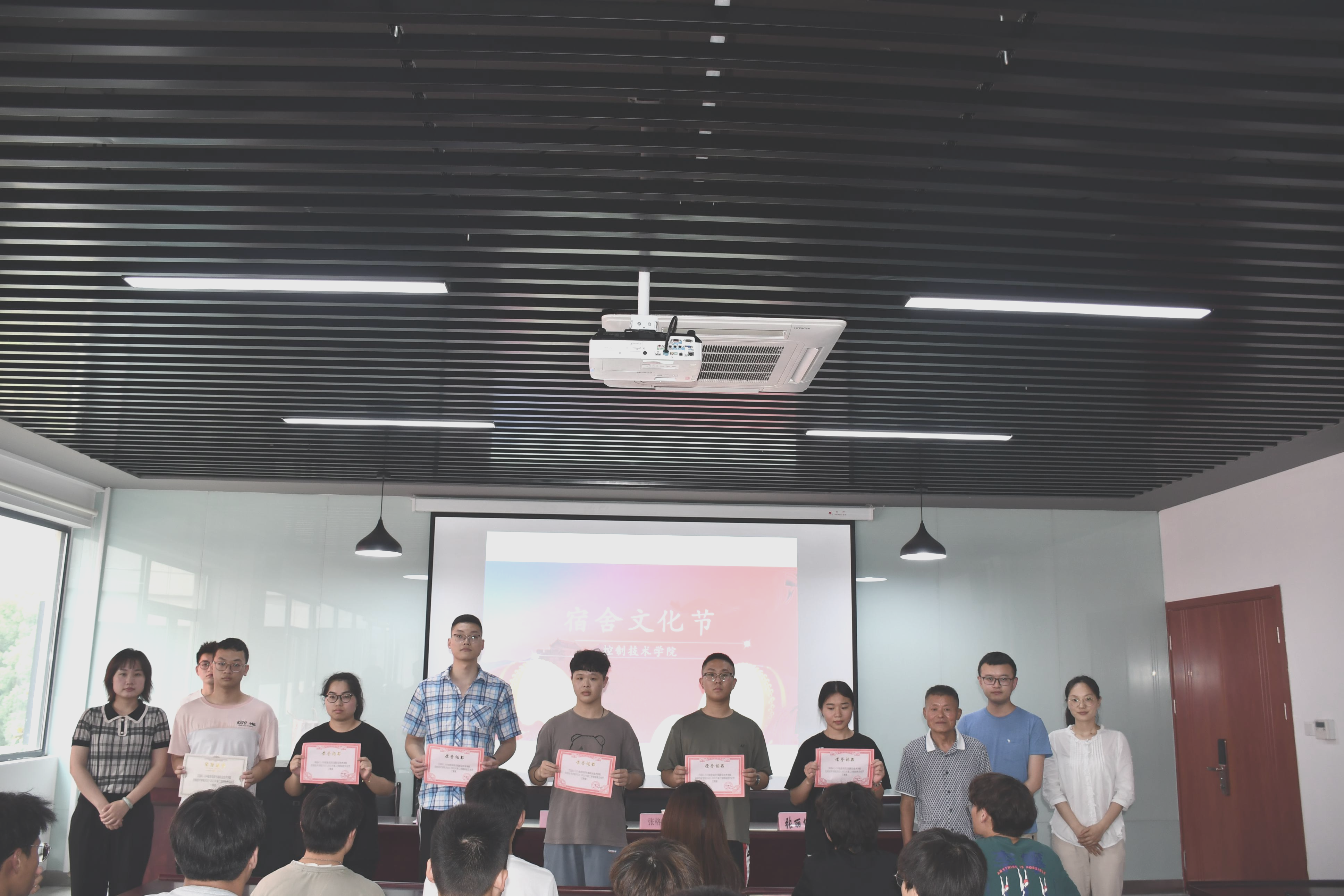 为了加强同学们的劳动教育,营造整洁温馨的寝室环境,创建文明和谐的宿舍氛围。6月15日下午13点,控制技术学院于产教融合大楼202举行了2020-2021学年第二学期“宿舍文化节”暨文明宿舍评比颁奖活动,学校关工委张格物老师,控制技术学院分团委书记庞军老师,辅导员赵欣欣老师,张丽仙老师,以及获得文明宿舍表彰的寝室和部分学生代表参加了本次活动。