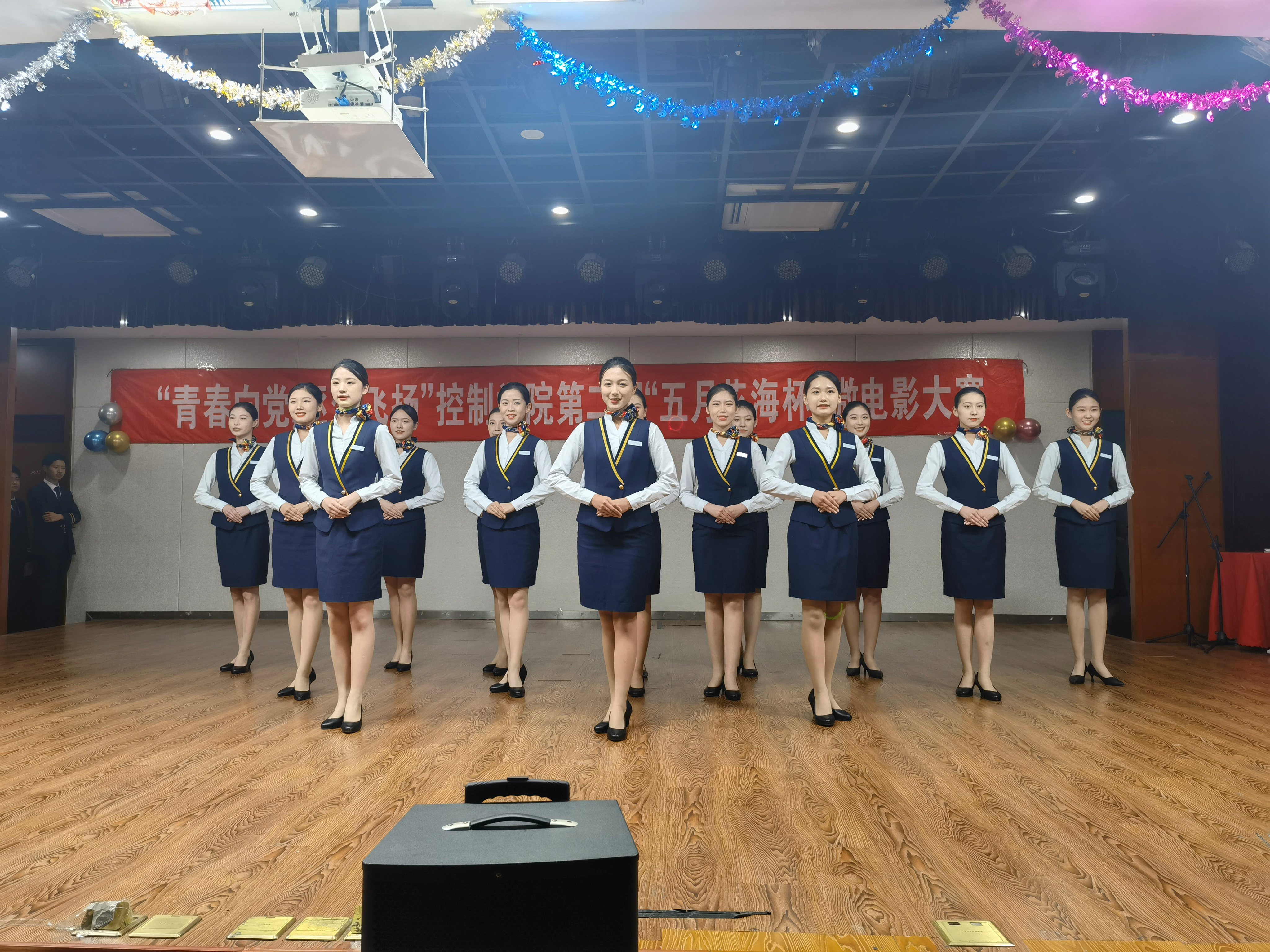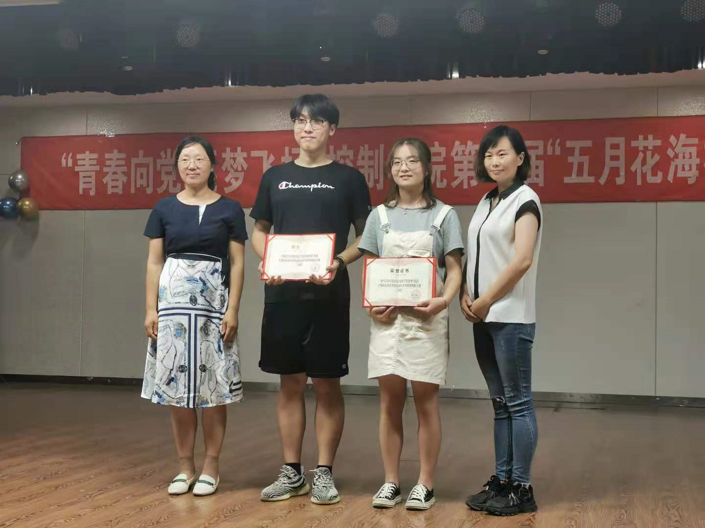 活动由空乘的礼仪表演拉开序幕。随后,控制技术学院五月花海文艺部带来的歌舞表演,脱口秀,情景剧,rap,拉丁舞与朗诵等一一呈现,为观众带来了异彩纷呈的视觉盛宴。穿插在节目中的展现当代大学生精神风貌的微电影得到了同学们的热烈掌声。最终,控制技术学院机电22031班选送的《我们》获一等奖,出席本次活动的老师们为获奖者颁奖。大赛在对建党百年的真挚祝福声中圆满结束。