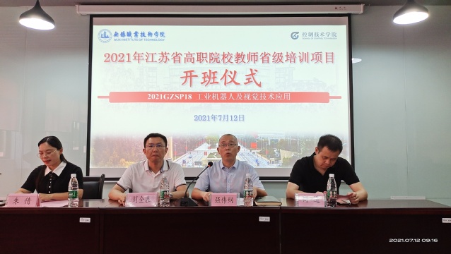 7月12日上午,2021年江苏省高职院校教师省级培训项目-工业机器人及视觉技术应用的专业类教师教学能力提升培训班在控制技术学院会议室举行了开班典礼。