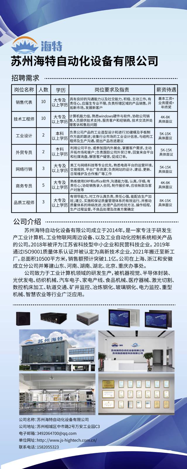 苏州海特自动化设备有限公司成立于2014年,是一家专注于研发生产工业计算机、工业物联网周边设备、以及工业自动化控制系统相关产品的公司。