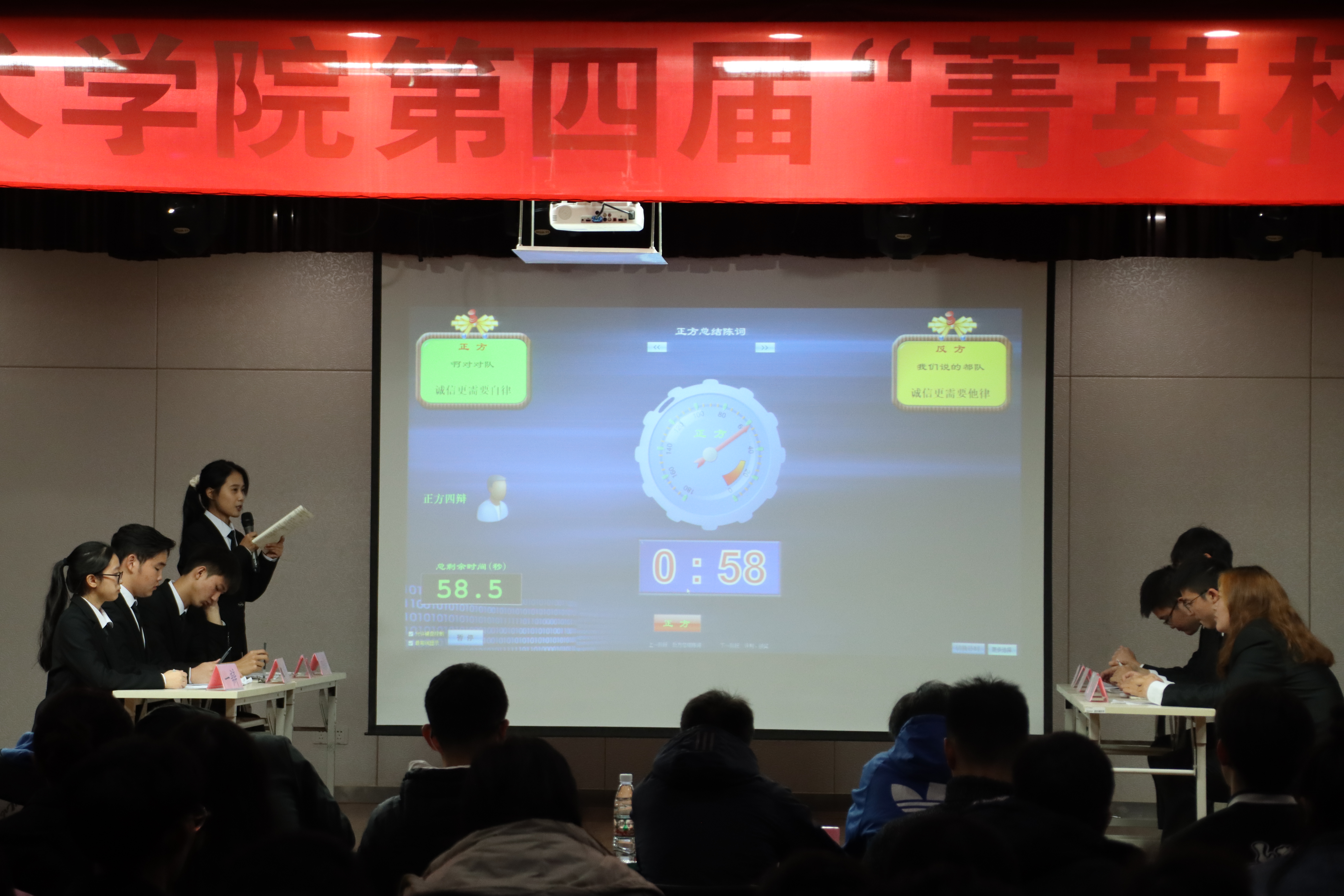 12月15日晚上六点半,控制技术学院第四届“菁英杯”辩论赛决赛在青春剧场打响,来自全校的200多名学生参加了本次活动。本次比赛由控制技术学院分团委书记庞军老师和控制技术学院分团委团学干部和学生会主席团成员担任评委,决赛的辩题为“诚信更需要自律/他律”。决赛现场,正方辩手首先提出了自律是诚信的基础,并举例论证了“无法自律,何以律人”的道理;反方辩手随即提出了自律是在他律的条件下所形成这一观点,并对正方观点提出反驳。在最精彩的自由辩论环节,双方辩手淋漓尽致地展现了自己活跃的思维能力,碰撞出智慧的火花。最后的总结陈词环节中,正方四辩承认了他律的作用,但是肯定了自律对于诚信的治本力度,从而论证了自律相对更重要;反方四辩发言掷地有声,通过列举法制社会带来的美好来说明他律对于诚信的不可缺少。最终,正方因为对辩题的把握略胜一筹赢得了比赛。本次活动旨在培养和提高同学们的思辨能力和团队协作能力,激发广大同学投身学生活动的积极性;本次辩题也引发了同学们对于诚信的思考,是开展校园诚信教育、构建良好校园文化的具体实践。