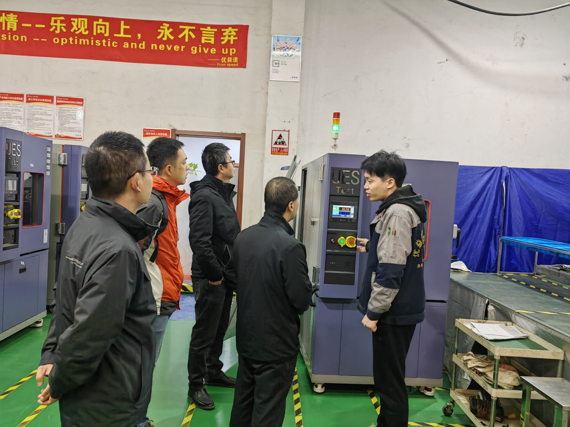 在刘天华总经理的带领下,老师们参观了公司的实验室以及生产车间,了解了公司的技术服务能力和研发水平。随后,双方在会议室进行了座谈交流,会上刘天华总经理作为玛雅吧 供热空调专业的优秀毕业生,对母校和专业老师们的培养表达了感谢,向老师们介绍了公司创立以来的发展历程,及公司的主要产品和成功案例,公司致力于各种环境试验设备的开发和生产,产品包括恒温恒湿试验箱、高低温交变湿热试验箱等系列四十多款产品,应用于国内外各大领域,现公司已成功申获高新技术企业证书。在过去的几年里,数名无锡职院供热空调专业毕业生在加入公司后表现优异,得到了很好的发展,刘总表示非常欢迎后续供热空调专业的学弟学妹们到公司工作,和公司共同成长。会上几位专业老师介绍了专业建设的思路和实训室建设的方案,提出非常希望与优益速合作共建实验室的想法,双方讨论了合作思路和初步方案,刘总表达了非常支持专业实训室建设,双方达成了合作的意向,会后刘总在专业老师的邀请下,专程来到学校实训室进行了现场参观和考察,了解实训室设备布置情况。