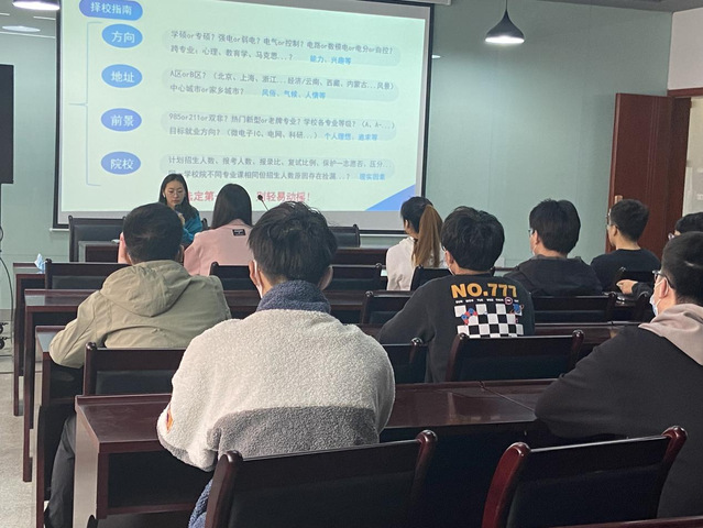 查栩豪同学首先介绍了个人情况,随后从考研的四门课程入手,分别介绍了数学,专业课,英语和政治的具体复习方法和时间规划,有针对性地给出了相关建议;在介绍经验过程中和同学们进行了互动,对同学们心目中的理想院校有了大致的了解,并针对报考院校给出了相应的意见,同学们真真切切感受到了考研的那份紧迫感,并在接下来的学习生活中作出相应的调整,争取在两年后的备考过程中做到游刃有余,科学高效。
