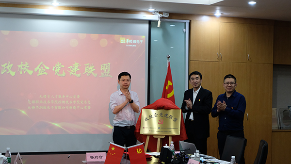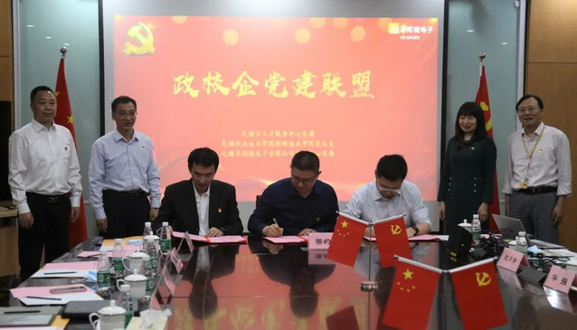 为拓展党建工作新载体,打造党建工作新平台,探索党建活动新方式,促进党建工作与学生就业、专业建设、人才培养等学院中心工作深度融合,以党建为引领,助推政校企合作,5月10日下午,在校长龚方红的带领下,控制技术学院党总支书记曹小兵、副院长黄从贵与部分教工党员等一行9人赴无锡华润微电子有限公司走访调研,与无锡市人才服务中心、华润微电子有限公司开展了一场别开生面的“精准引才 精细育才 精心用才”政校企合作交流会暨党建联盟结对签约仪式。