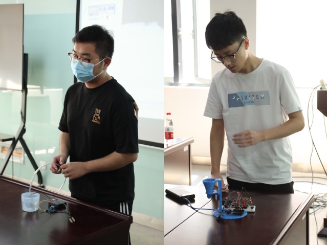 活动现场,首先由控制技术学院分团委书记庞军老师致辞,鼓励同学们学以致用,提升动手实践能力,增强创新意识,成为理论知识和实践技能协调发展的高素质人才;随后,参赛选手们按照顺序轮流上台向观众和评委们展示自己充满创意的小发明,包括基于视觉追踪及红外波捕捉定位的智慧灭火系统、透明小电视、触摸二合一控制灯等形式多样、功能各异、令人眼前一亮的作品,赢得了台下观众热烈的掌声。最终,来自控制22132的肖宗徳同学以及组员刘家辉,陈天,李伟斩获本次大赛冠军。比赛结束后,由控制技术学院科技创新协会指导老师商萍君老师对本次比赛进行总结,肯定了本次比赛同学们的努力付出,对协会的发展提出了展望,最后由电气专业教师姚永红老师对获奖同学进行颁奖。