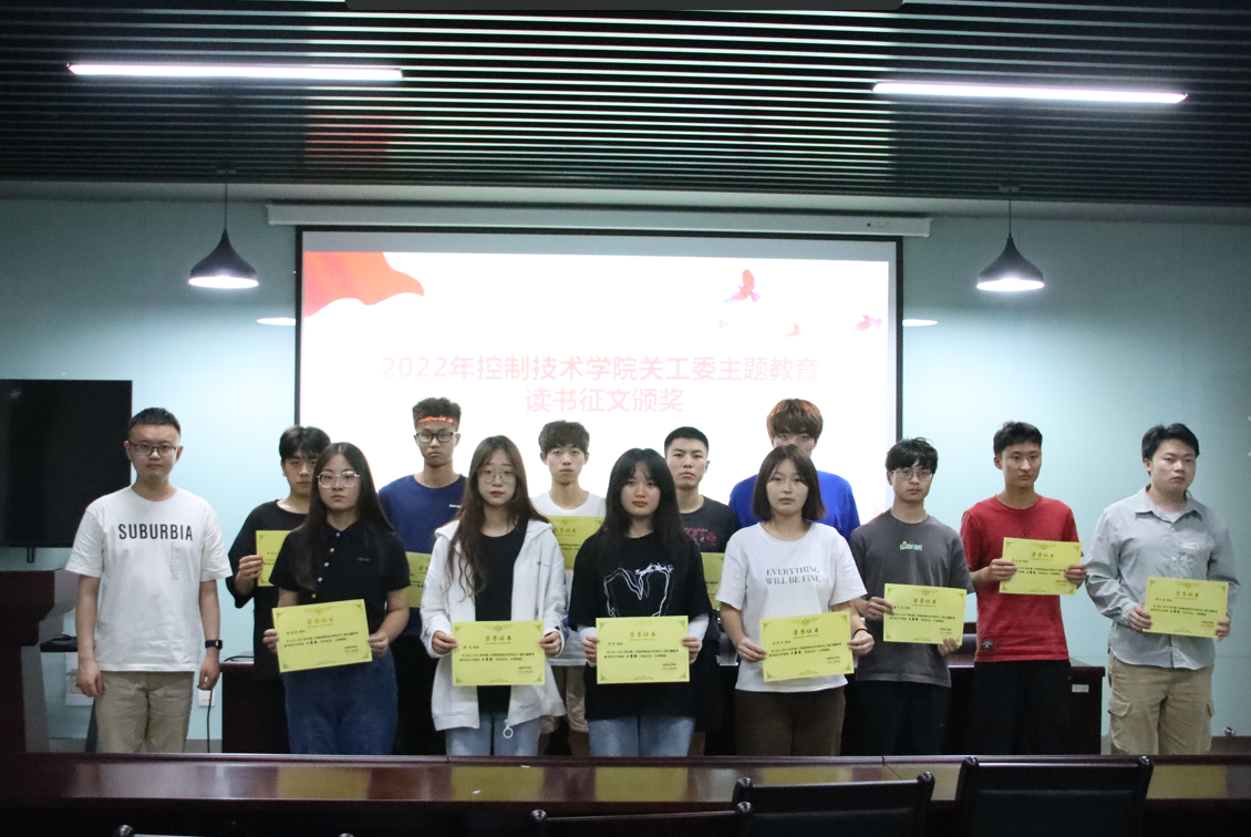 5与30日晚7点,控制技术学院关工委主题教育读书征文活动在产教融合大楼202会议室举行颁奖仪式,控制技术学院分团委书记、关工委秘书长庞军为获得主题教育读书征文活动表彰的同学颁发证书,勉励同学们加强理论知识学习和实践技能培养,多读书读好书,以“共和国勋章”获得者和“七一勋章”获得者作为自己的奋斗榜样,在做好本职工作中实现人生理想,不断为实现中国梦贡献青春力量。