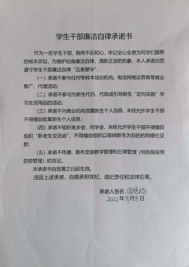 会议最后,全体班助签订了《学生干部廉洁自律承诺书》,承诺不忘班助初心,全心全意为同学们服务。