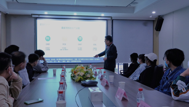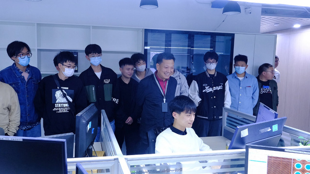 最后,在同步科技人力资源部经理刘进军的带领下,曹小兵书记一行参观了同步科技研发中心展示区,现场调研了印制电路板设计中心、测试中心、电子装联等部门,并看望了解我院已毕业学生在该单位工作情况。