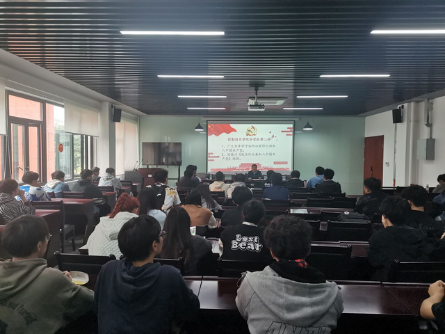 10月27日下午1点,控制技术学院关工委在产教融合大楼202室组织开展2022-2023学年第一学期青马公开课暨第二期入党积极分子“我为什么入党”主题党课,本次主题党课由控制技术学院关工委秘书长丁亚楠老师主持,关工委副主任张格物老师主讲。