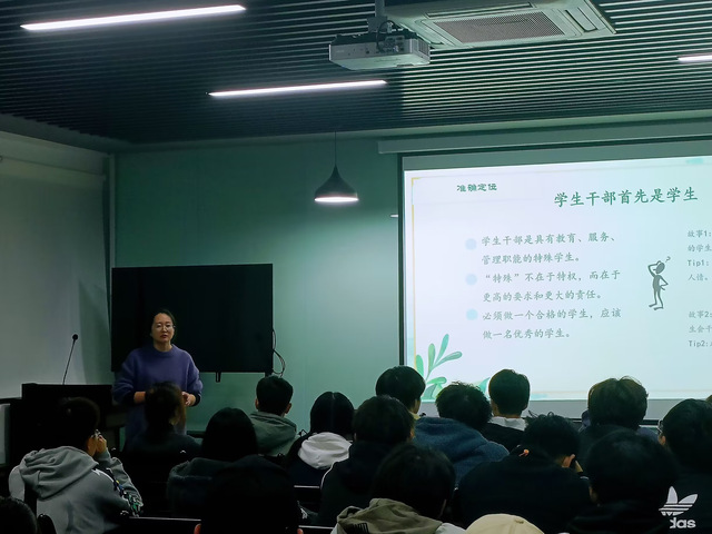 此次讲座主题鲜明、内容精彩,郑月圆老师通过幽默诙谐的话语和生动形象的例子,让同学们深刻了解到,一名优秀的学生干部应该如何要求自我、提高自我、完善自我。在场聆听的同学们备受鼓舞,纷纷表示在今后的工作学习生活中将努力提高自身修养和工作能力,争做学生的“好榜样”,学校的“好干部”,时代的“好青年”,用实际行动谱写新时代青年的责任与担当。