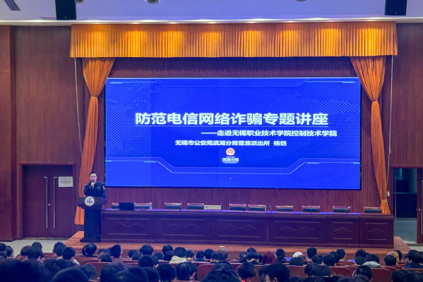 为深入贯彻落实习近平总书记关于打击治理电信网络诈骗犯罪工作的重要指示精神,控制技术学院围绕为师生办实事、解难事,为师生营造一个全民反诈、无“诈”校园的环境,于3月6日和8日晚,在国教报告厅一楼邀请无锡市公安局滨湖分局雪浪派出所杨恺警官、闵鑫宇警官,分别开展两场“防范电信网络诈骗专题讲座”,学院2021级全体学生和辅导员参加讲座,实现大二年级学生全覆盖。