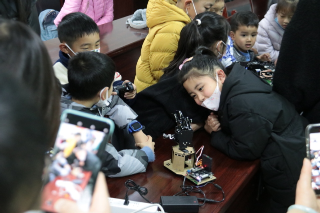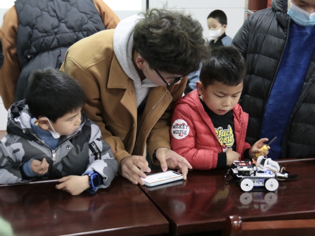 活动中,机器人协会科普志愿者结合生活中常见的机器人产品,向与会的小学生和家长介绍了不同机器人工作原理,以及机器人在生活中的运用。在演示环节中,科普志愿者操作机器人进行了“小物品搬运”“机械臂夹玩具”等,并指导和帮助小学生实际操作履带式搬运机器人、仿生机械臂、可编程机器人小车等,让小朋友们亲身、近距离感受现代科技的奥妙与神奇,大大满足了小朋友们的求知欲和好奇心。