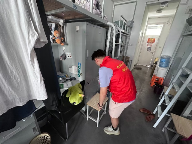 首先,检查宿舍的卫生情况和宿舍的用电情况,排除可能会出现的安全隐患,主动帮助同学清理宿舍卫生,保持宿舍的干净整洁,为同学们创造一个安全舒适的环境去学习和生活。