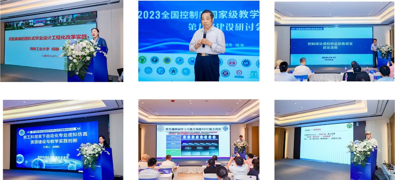 大会上湖南工业大学何静教授、西安理工大学刘丁教授、国防科技大学徐晓红教授、清华大学邢春晓教授和东南大学戴先中教授分别以“真题真做的团队式毕业设计工程化改革实践”、“教育部控制理论课程群虚拟教研室实施、建设与改革”、“新工科背景下自动化专业虚拟仿真资源建设与教学实践创新”、“人工智能及ChatGPT的研发与应用”、“对工程教育专业认证自评报告的认识与体会——从专业教师与认证专家的视角”为题作大会报告。