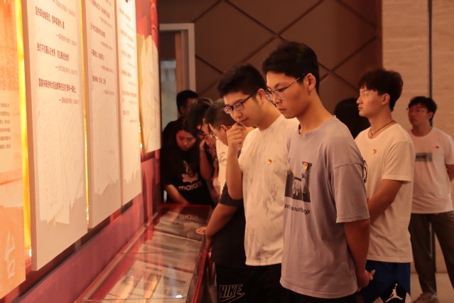 随后,大家来到党建馆负一楼,参观学习了无锡市委市政府自党的十八大以来践行“争当表率、争做示范、走在前列”的实干精神,在经济、文化、生态等方面取得的一系列伟大成就,以踔厉奋发的姿态谱写“强富美高”新江苏的宏伟画卷,给大家留下了弥足深刻的印象。调研参观后,大家在观影大厅收看了江苏省荣军医院原休管科科长吴成同志的纪录影片,讲述了吴成同志毕生致力于共产主义事业,在退休后面向无锡市青少年群体,坚持数十年开展党史学习教育的经历,先后荣膺“全国模范退役军人”、“中国好人”等称号,鼓励同学们将个人理想与国家命运紧密结合,在社会主义现代化强国的建设路途上坚定信念,在科研、创新和创业领域勇敢开拓,实现人生理想。