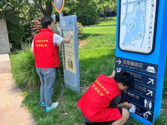 虽然烈日当空,但是志愿者的热情不减。负责人将大家分成两队,其中一队携带抹布,在公园内擦拭公示栏,沿线指示牌,清理小广告留下来的顽固污渍。另一队携带垃圾袋,在公园绿化带内拾捡有色垃圾,志愿者们不放过任何一个角落。每名志愿者分工明确,做好自己的本职工作。志愿者没有一个人喊苦喊累,而是越干越积极,丝毫没有懈怠。