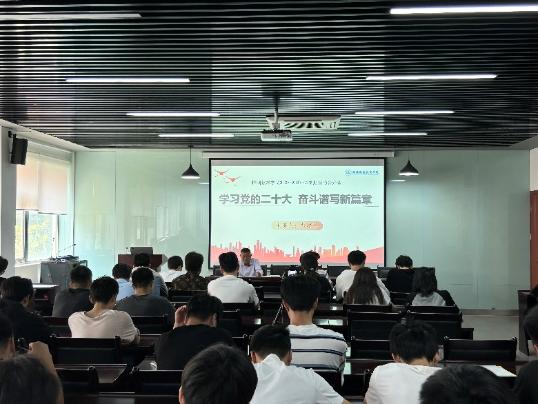 控制技术学院关工委副主任张格物老师结合中国共产党百年党史,以党的二十大的主题开篇,对“大会主题”、“三个务必”、“两个确立”、“两个结合”、“六个坚持”、“中国式现代化”、“高质量发展”、“全过程人民民主”、“五个必由之路”等“关键词”由浅入深进行了深入解读,用通俗易懂的语言呈现给大家,激励同学们坚定理想信念,听党话、跟党走。最后,张格物老师寄语同学们,希望大家坚定信念,立大志、明大德、成大才、担大任,努力成为堪当民族复兴重任的时代新人!