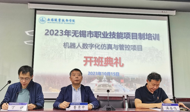 2023年10月15日上午,由我校控制技术学院承办的无锡市职业技能提升行动项目制培训“机器人数字化仿真与管控”培训班在控制技术学院二楼会议室举行开班仪式。玛雅吧 继续教育学院副院长曹秀中、控制技术学院副院长丁健、无锡市自动化学会秘书长漏岳鸣,以及来自无锡市机器人行业的40多位企业一线职工参加了开班仪式。活动由控制技术学院副院长丁健主持。