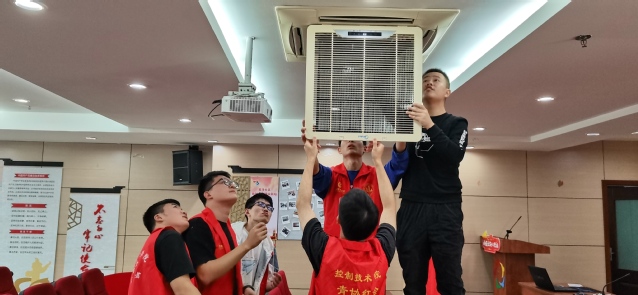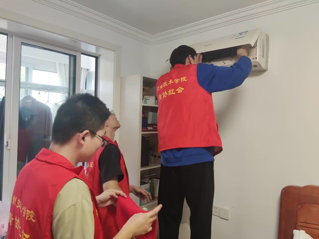 接下来在老师们的带领下来,供热空调班学生充分发挥技能专长,把课本上学到的理论知识运用到实践中,他们帮震泽社区老人清洗空调,在实践中发现了很多疑难问题,有的老人家是中央空调,有的是柜机,有的是挂壁式等,针对不同种类的空调清洗方式各有不同,遇到困难大家集思广益,一起动手解决。清洗过程中,轻拿轻放格外细心,安装时也很认真细心。把一位老人感动的赞不绝口说:你用心暖我我也用心暖你。你们毕业后一定大有可为。在实践活动中,同学们不仅充分发挥了个人技能专长,也给带给老人们许多温暖。