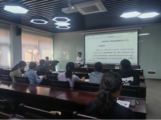 根据《关于做好2023级新生心理普测后访谈工作的通知》要求,为做好新生心理普测后访谈建档工作,提高班主任访谈的准确性和真实性,控制技术学院在开展访谈工作前,特邀请校心理健康教育中心刘福莲老师做普测访谈技巧培训,刘老师结合自身约谈工作经验从约谈的程序、约谈内容、约谈注意事项等方面给班主任们做经验指导,并为班主任们现场提出的问题答疑解惑。