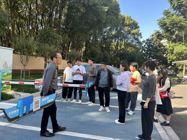 既有烟火气,又有“黑科技”,改造后的小区面貌令人眼前一亮。在社区负责人的带领下,我们走进水苑新村,实地感受智慧社区的魅力。整个小区干净整洁,配电表、金属雨棚、爱心座椅、公共绿化带等等样样齐全,小区增加的海绵工程更是吸引了同学们的注意力,社区负责人详细的介绍到海绵工程是在新建的绿地上因地制宜建设下凹绿地、雨水花园等,充分利用雨水资源作为绿化喷灌和景观用水,在新建的非机动车道、人行道、停车场等使用透水铺装。工业自动化专业的刘苏龙感慨道:我是学工业自动化专业的,社区的智慧化服务离不开工业自动化技术,我要用自己的专业为智慧城市建设作出贡献。同学们在社区感受科技力量的同时,也树立了利用专业投身城市建设的职业理想。