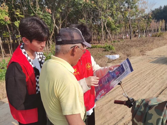 会后,同学们分组跟随乡村负责人上门入户,通过与群众的亲切沟通交流,同学们从中感受到党和政府为实现乡村振兴作出的努力和贡献,增强了社会责任感。走访之后,同学们拿出准备好的反诈宣传海报张贴在醒目处,并向村民们进行安全知识宣传,为农村建设献出绵薄之力。
