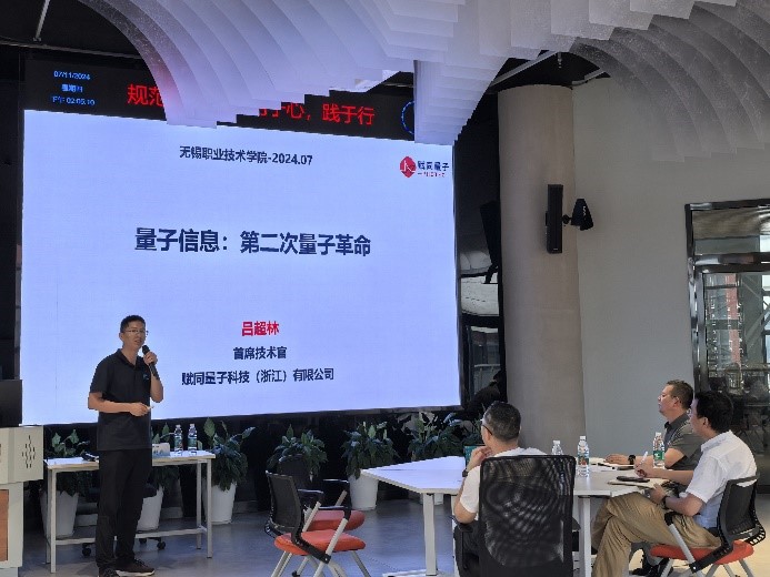 7月11日下午,赋同量子科技(浙江)有限公司首席技术官吕超林博士,毕业于中科院上海微系统与信息技术研究所,带来了题为“量子信息:第二次量子革命”的讲座,深入探讨了量子信息科学的前沿领域。讲座深入浅出地介绍了量子通信、量子计算以及量子精密测量等前沿科技,并探讨了这些技术在现代社会的潜在应用,让在场的教师们深刻感受到量子信息技术的巨大潜力和对未来社会的深远影响。吕教授的讲座不仅丰富了教师们的知识储备,也为学院未来的科研方向提供了新的思路。