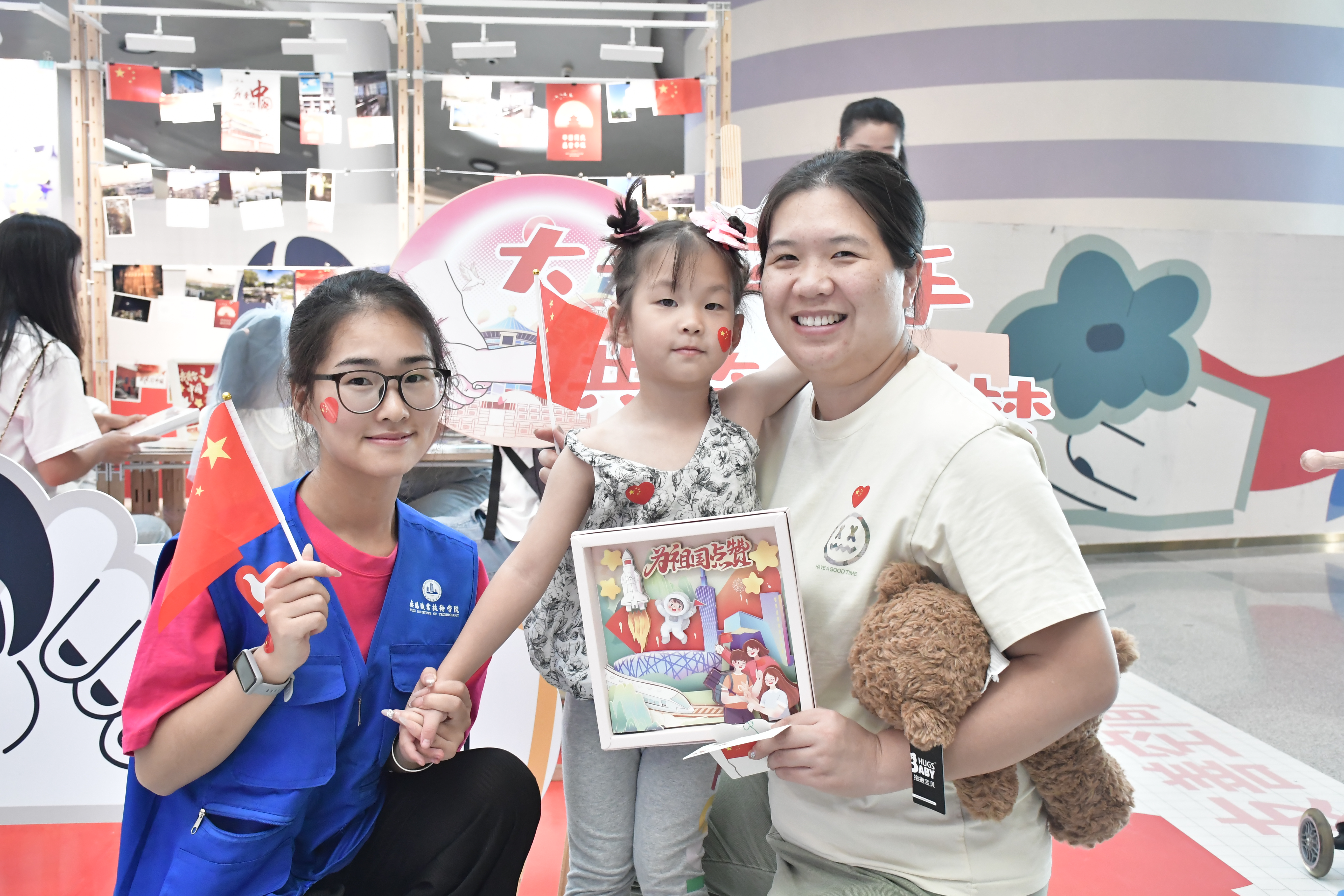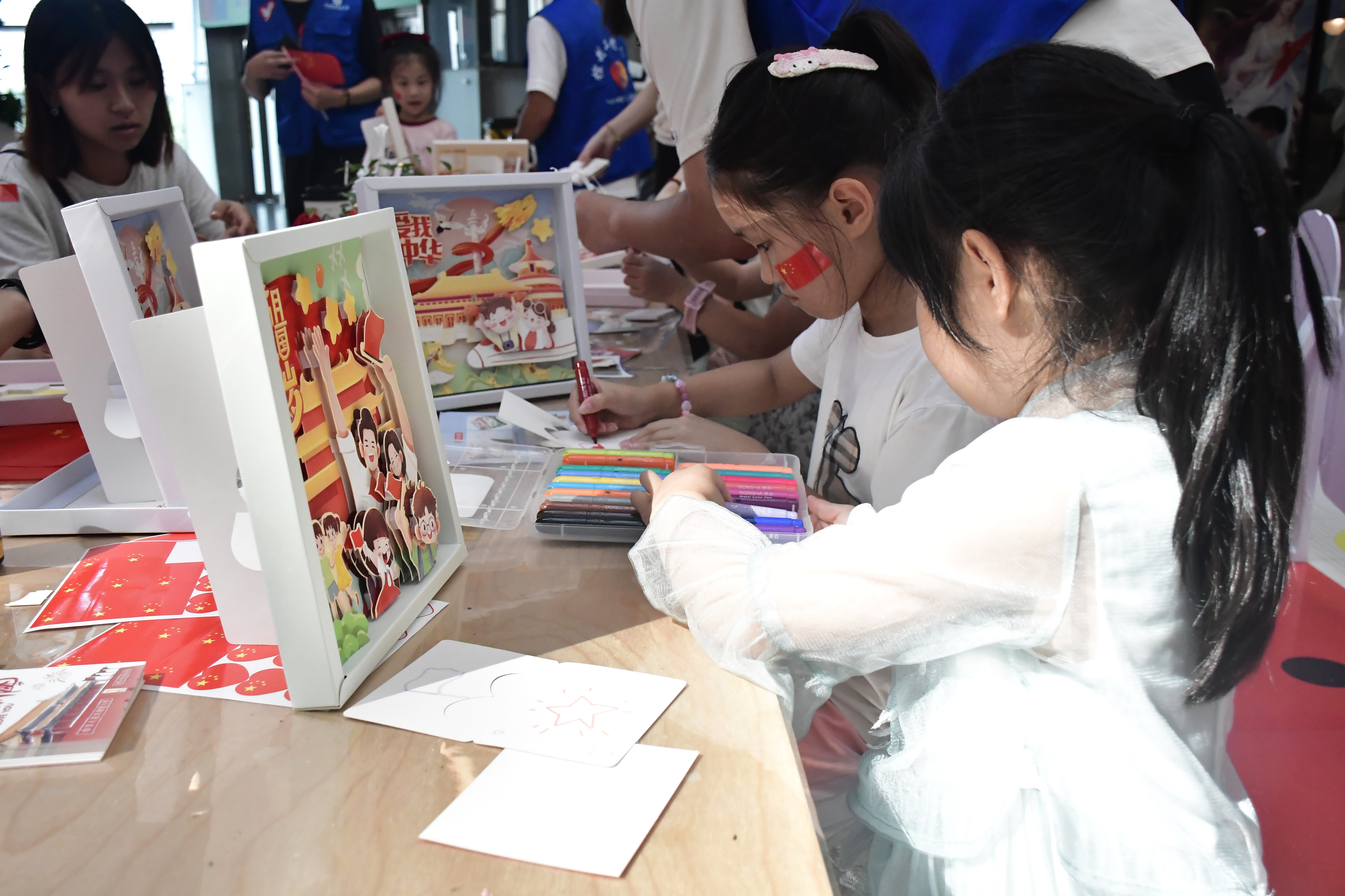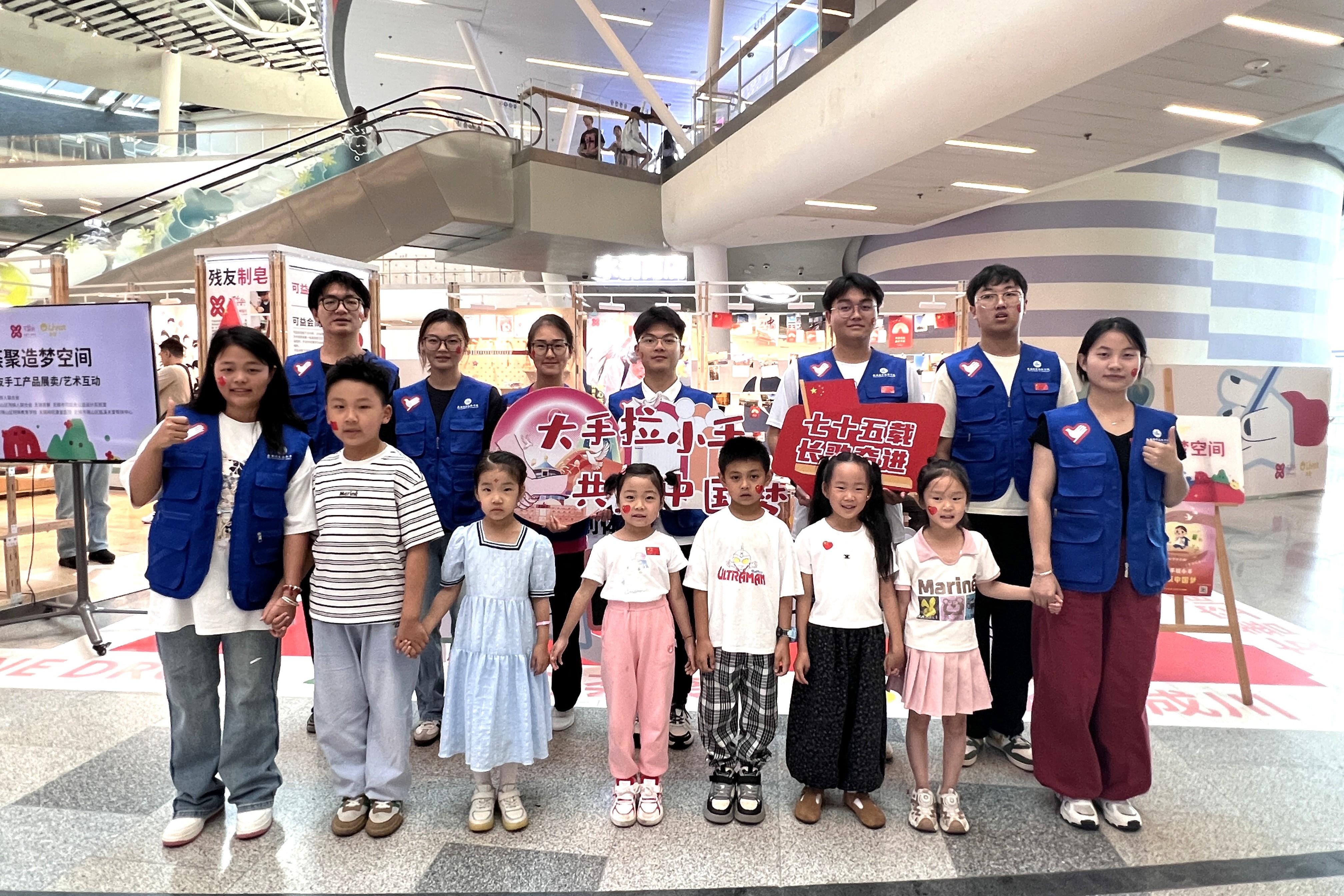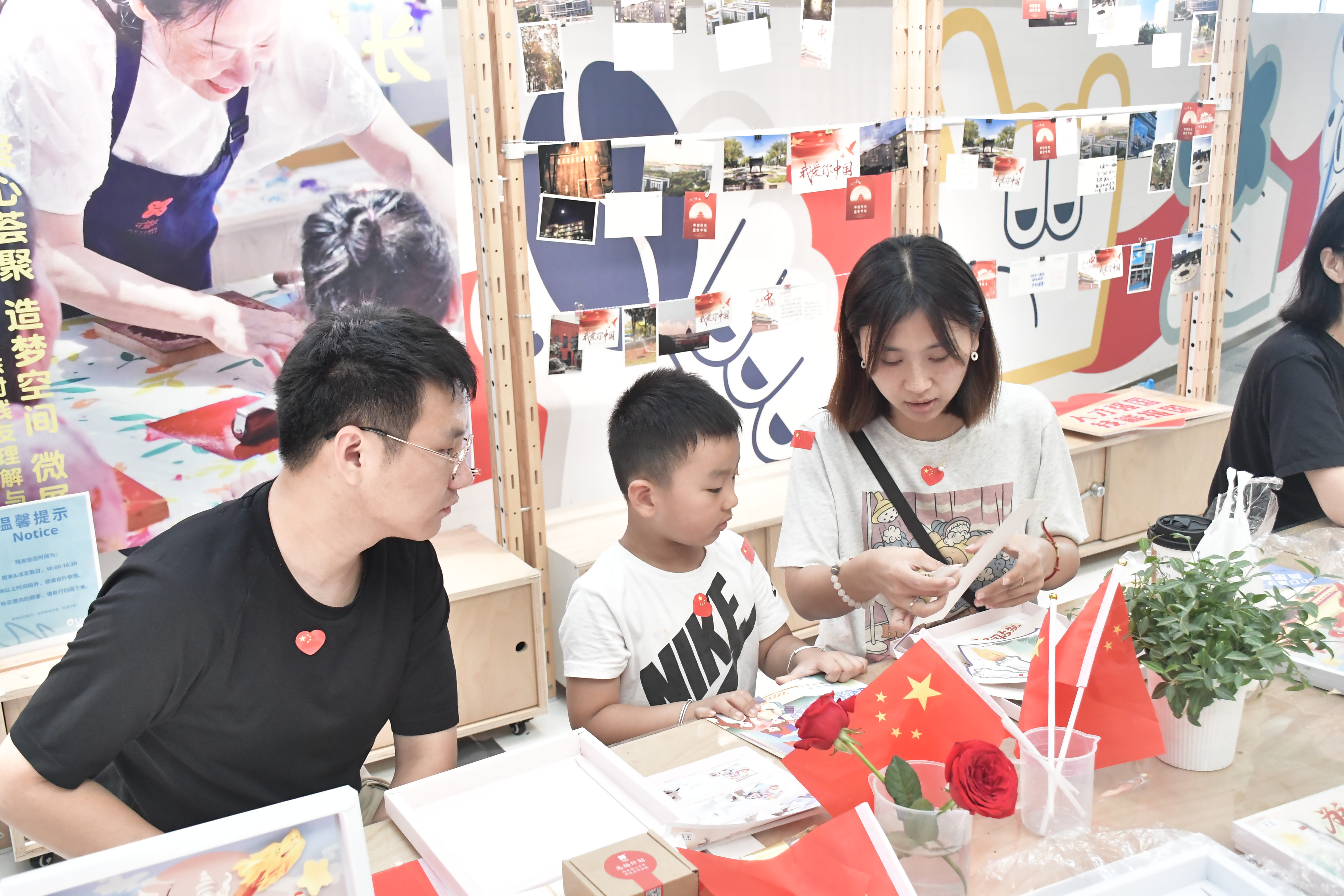 活动中,志愿者们邀请家长和孩子进到水滴商店,了解残友公益项目,制作手工作品。国庆将至,孩子们深受氛围感染,小手用心地拼贴,完成了一幅幅精美的画卷。“祝祖国母亲75周岁生日快乐!”孩子们与志愿者手拉着手,录制下为祖国华诞送上祝福的视频。“我是哈尔滨工业大学大一新生,我的愿望是通过自己的不懈钻研,打破国外对芯片材料的垄断!”一名青年掷地有声地说出自己的理想。志愿者还鼓励孩子们努力学习本领,未来一同为社会主义现代化强国建设作出贡献。