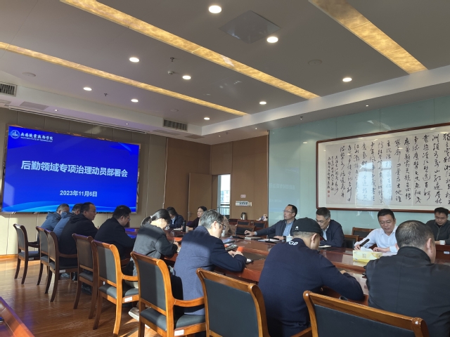 11月6日上午,学校后勤领域专项治理动员部署会在厚德楼F201会议室举行。校长周桂瑾,副校长储开峰,后勤党总支各部门全体中层干部、三级机构负责人,纪委办、审计处、财务处、校办等部门负责人参加会议,会议由后勤党总支书记宋静辉主持。