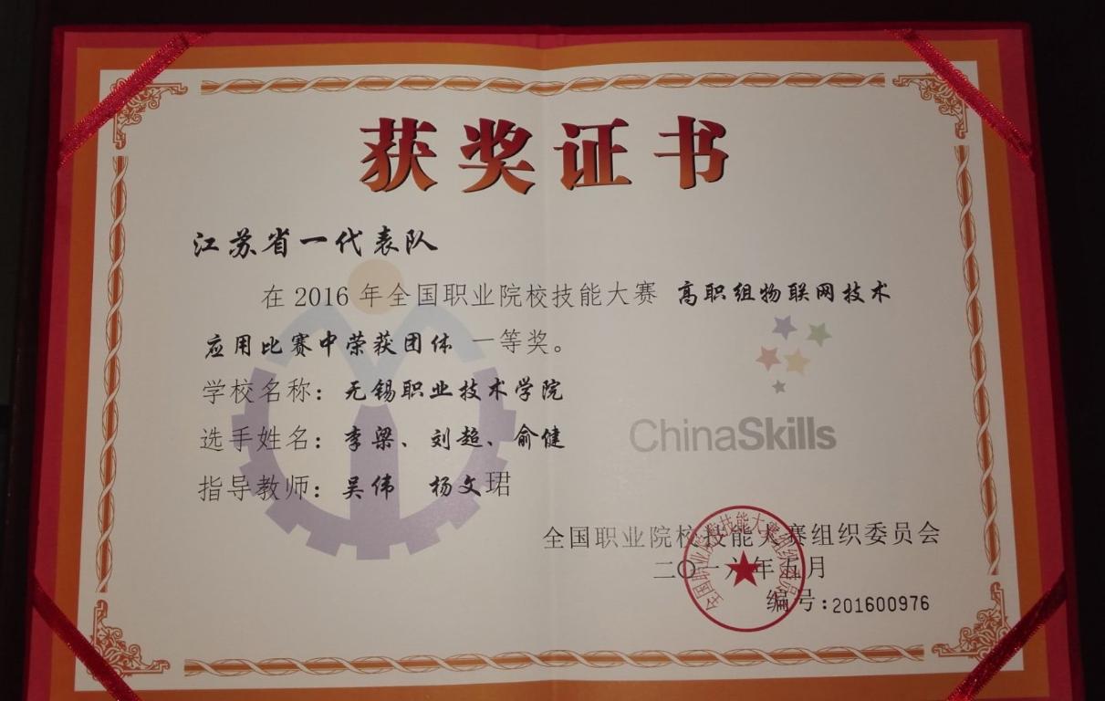 2016年全国职业院校技能大赛于5月8日上午在天津开幕,我校截至9日上午已斩获一等奖1项,来自我校物联网技术学院的李梁、刘超、俞健同学组成的代表队在“物联网技术应用”赛项与另外72个队的激烈竞争中获得一等奖第2名的佳绩,该组指导教师为吴伟、杨文珺。
