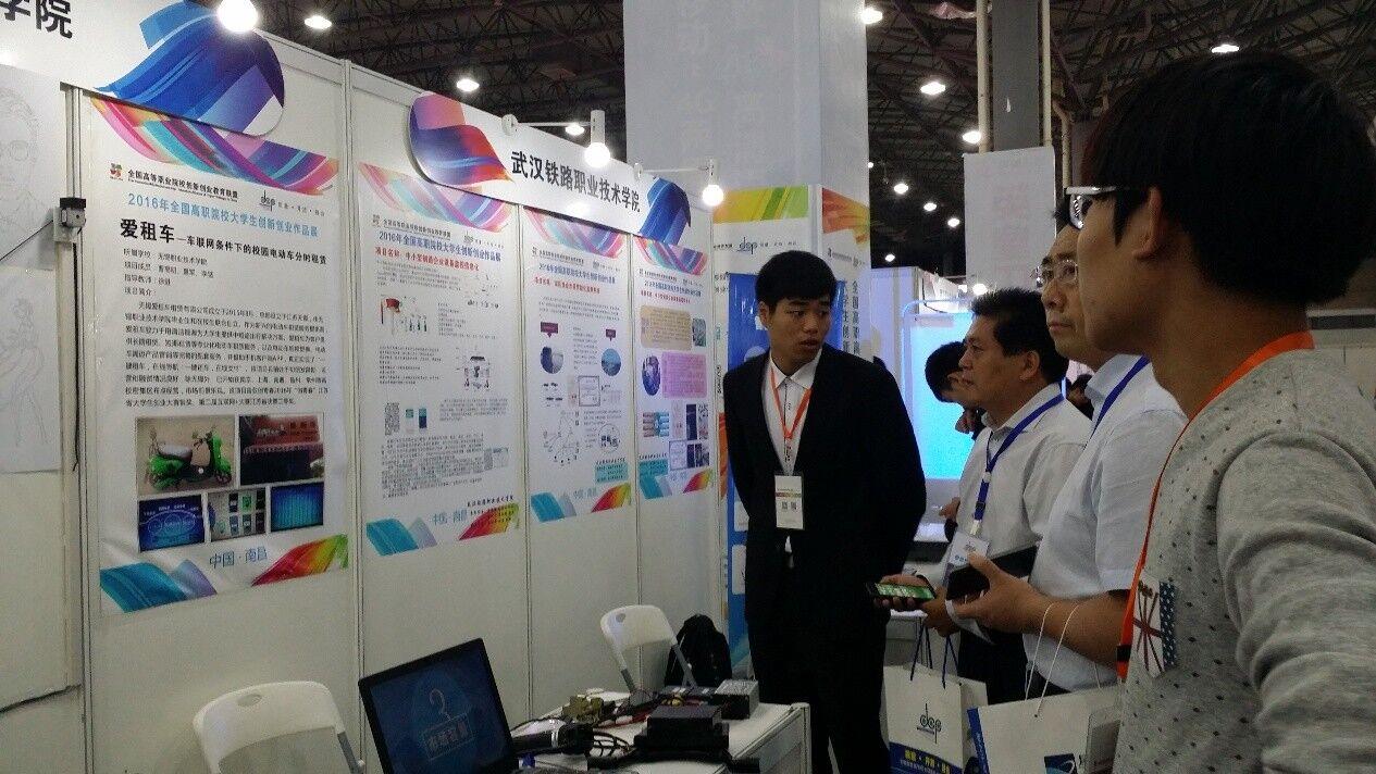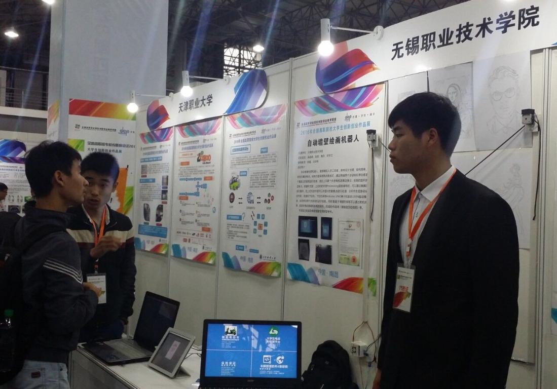 10月28日至29日,2016年全国高职院校大学生创新创业作品展在南昌国际会展中心隆重召开。我校的创新项目“自动墙壁绘画机器人”和创业项目“爱租车-车联网条件下校园电动车分时租赁”两个项目参加了展览。