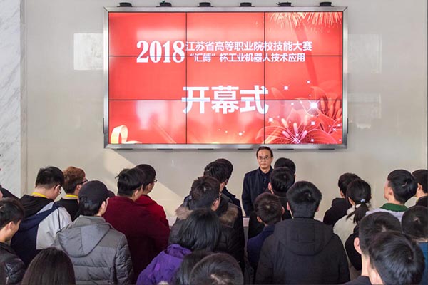 3月22日下午,“2018年江苏省高等职业院校技能大赛物联网技术应用、工业机器人技术应用赛项”开幕式分别在我校体育馆二楼、智能制造工程中心一楼举行,来自省内的50支代表队将于23日参与竞赛。 开幕式分别由物联网技术学院和控制技术学院相关负责人主持,物联网技术应用赛项开幕式出席人员为江南大学物联网工程学院彭力教授以及各参赛队成员;工业机器人技术应用赛项开幕式出席人员为浙江工业大学禹鑫燚以及各参赛队成员。 彭力教授、禹鑫燚教授和我校参赛选手分别代表裁判长和参赛选手发言,表示将恪守赛项规程,坚持客观、公平、公正的原则,确保大赛顺利进行,赛出水平、赛出风格。 (教务处 撰稿/摄影:赵子云;审核:奚小网)