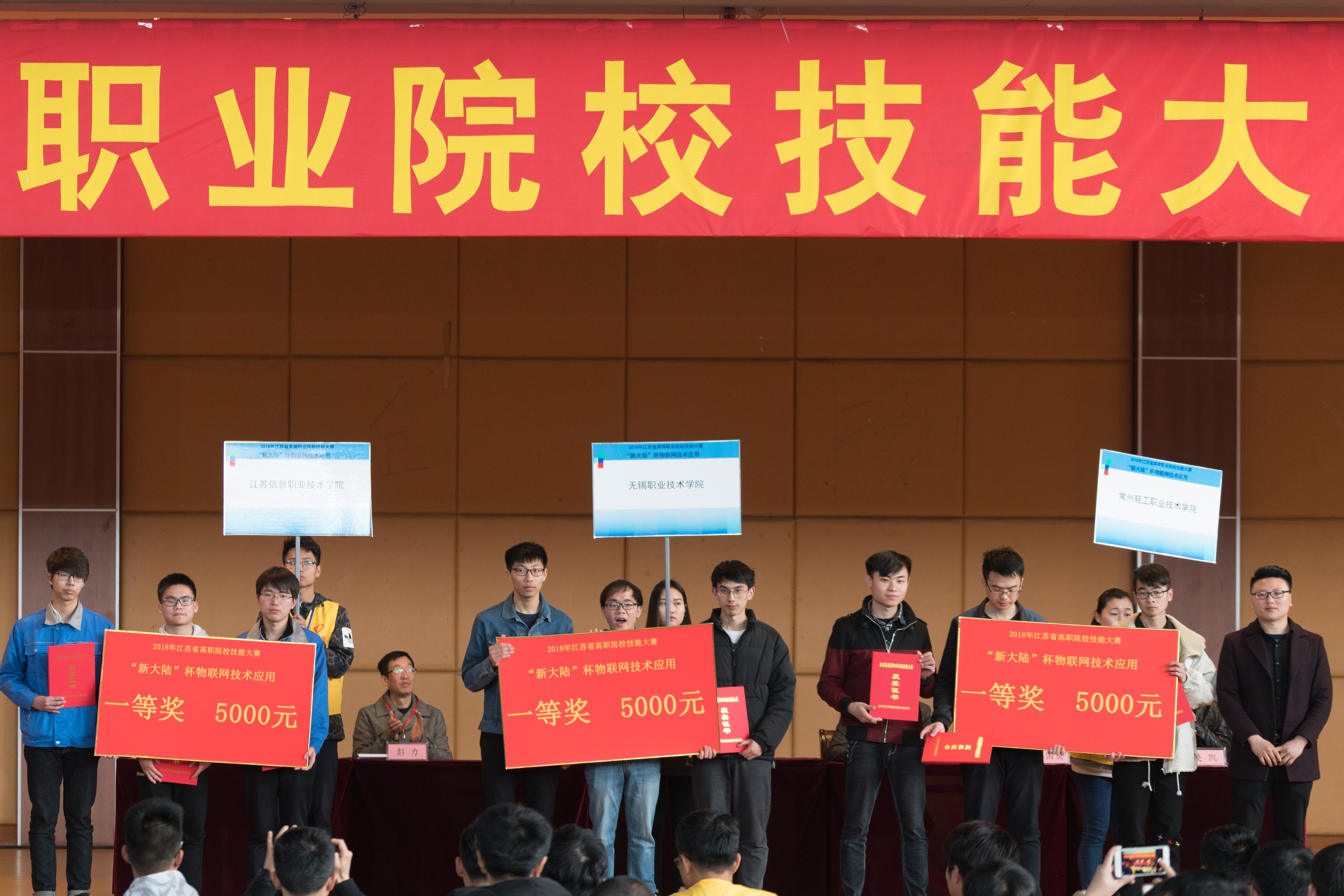 3月24日上午,江苏省高等职业院校技能大赛物联网技术应用、工业机器人技术应用赛项在我校太湖校区体育馆二楼举行闭幕式暨颁奖典礼。赛项赞助方北京新大陆时代教育科技有限公司全国销售总监张方毅、江苏汇博机器人技术股份有限公司华东区总监王杰,我校副校长华坚、江南大学物联网工程学院彭力教授、深圳汇川技术股份有限公司教育总监韩国震、上海机器人在线有限公司教育事业部总监吴凯出席了闭幕式并为获奖代表队颁奖。 闭幕式由我校教务处处长奚小网教授主持。华坚副校长致辞并公布竞赛结果。华坚副校长表示,技能大赛已成为同学们提高职业素养、展示技能水平的重要舞台,同时也能够促进高职院校之间相关专业玛雅吧 改革成果的交流,进一步强化职业院校与企业的深层次合作,从而全面有效地推动职业教育为区域经济发展服务。 物联网技术应用赛项裁判长彭力、工业机器人技术应用赛项专家韩国震分别对竞赛内容和选手表现进行了详细点评,指出各参赛队均体现出良好的职业素养和精神风貌,并取得了良好成绩,比赛过程公平公正。 23日,两赛项分别在我校体育馆二楼和智能制造工程中心展开了激烈角逐,其中物联网技术应用赛项共有省内29所高职院校组成的代表队参赛,工业机器人技术应用赛项则吸引了省内21所高职院校参与竞争。 物联网技术应用赛项选取了工业化与信息化深度融合、核心技术与技能应用深度结合的智能工厂为主题,要求选手对指定应用业务场景分析,并进行设备选型和安装,然后对物联网云平台和感知层节点进行开发调试,最后在PC端和移动安卓端开发应用程序,与物联网感知层Zigbee、RFID、网络摄像机等设备进行交互,实时采集底层传感器数据信息,进行分析显示以及自动控制,完成业务场景所需功能。比赛最终评出一等奖3名、二等奖6名,三等奖9名,我校代表队由黄翀鹏、邱晓荣两位老师指导,朱学文、胡天睿、顾辉组队,同江苏信息职业技术学院、常州轻工职业技术学院代表队名列前三,斩获一等奖。 工业机器人技术应用赛项则要求选手完成机械和电气安装、视觉系统编程调试、工业机器人系统编程调试、工业机器人系统模块调试以及系统综合编程调试等任务,最终评出一等奖2名、二等奖4名、三等奖6名。该赛项较去年相比内容难度增加,平台更为开放、系统功能更加完整,也更接近工业实际的应用特点。我校参赛队自去年选拔优秀学生参与集训,最终由陆荣、丁健老师指导的王军、聂阳和姜鑫同学代表学校出征,比赛当天现场发挥出色,夺得第一名,与江苏联合职业技术学院苏州工业园区分院共同获得一等奖。