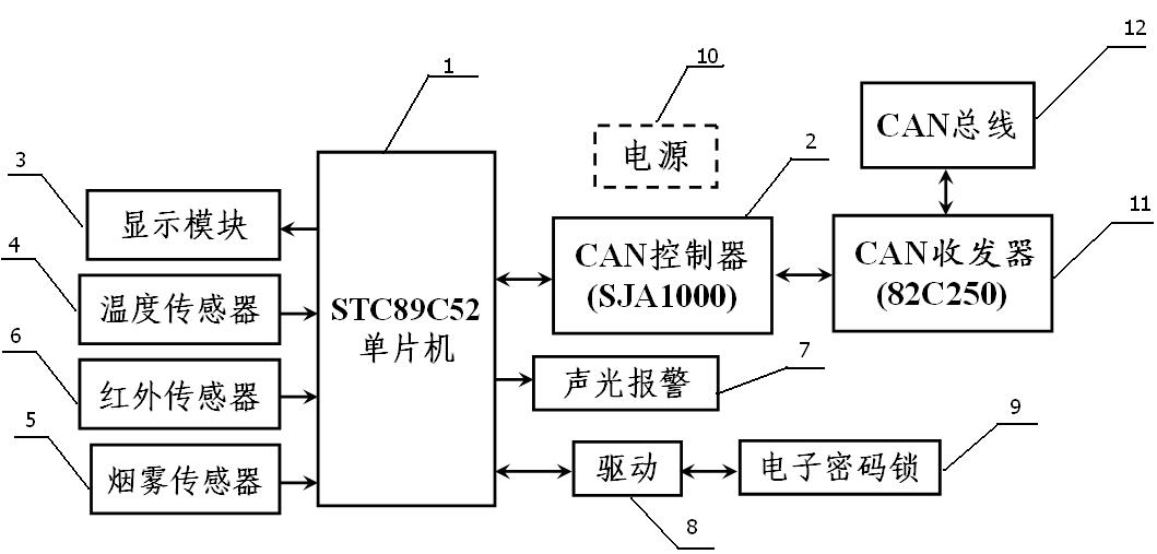 2毕业设计主要成果 卢文立同学在参与横向课题“故障录波智能采集与软件开发”过程中,负责CAN总线下模块化数据采集与监测,在此基础上延伸完成毕业设计,在毕业设计过程中公开发表论文1篇(卢文立,叶倩.基于CAN总线的实验室模块化监测系统,科技创新与应用, 2018,(6): 35-36:研究了实验室的监测控制问题,提出了一种基于CAN总线技术的实验室模块化监测系统,利用STC89C52单片机和多种传感器进行数据采集、处理和传输,从而实现了实验室温度、烟雾浓度监测和越限报警的功能。)同时,申请了2项实用新型专利,其中已授权1项。专利清单如下: [1]卢文立,叶倩.基于CAN总线的高校实验室监控系统,授权实用新型专利,专利号:ZL201721533337.4,授权公告日:2018年5月29日。 [2]卢文立,叶倩.一种实验室模块化安全监测及报警装置,实用新型专利,申请号:201820375932.8,申请日:2018年3月20日 实用新型专利[1]提供了一种基于CAN总线的高校实验室监控系统,包括监控中心以及分设在各实验室的CAN节点,所述监控中心和CAN节点均连接至CAN总线;所述CAN节点包括:与单片机相连的CAN控制器、显示模块、温度传感器、烟雾传感器、人体红外感应模块、声光报警装置、驱动模块、电子密码锁以及电源模块,CAN控制器通过CAN收发器连接CAN总线,驱动模块连接实验室门禁的电子密码锁。系统功能之一是通过各种传感器采集实验室的环境信息,并通过LCD显示出来;功能二是可以对实验室安全进行监控,通过热释红外传感器检测实验室人员活动情况、其他传感器检测实验室环境和安全信息,并通知实验室监控中心做相关处理,实现对实验室安全的实时监控和管理。